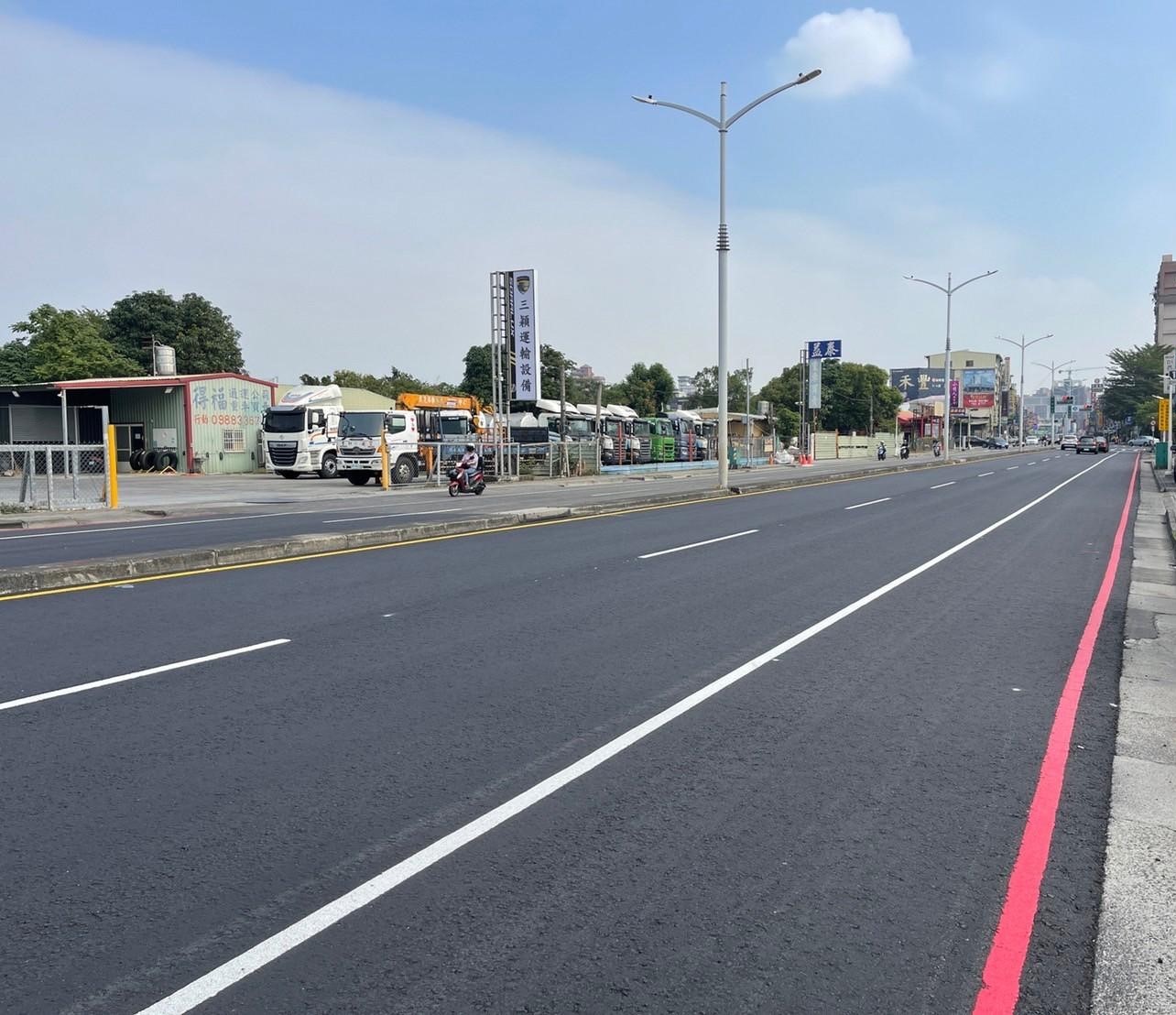 為強化臨海產業園區道路品質,進一步提升產業運輸效率,高雄市工務局道路養護工程處近期針對臨海工業區周邊道路陸續改善,包含前鎮區金福路(草衙二路至新生路)、小港區中安路(紅毛港橋至廈莊一街)、大業北路(中山四路至台機路)、北林路(博學路至山明路)等路段,就地取材應用中鋼轉爐石搭配改質瀝青進行刨鋪翻新,增進道路耐久性與行車安全。