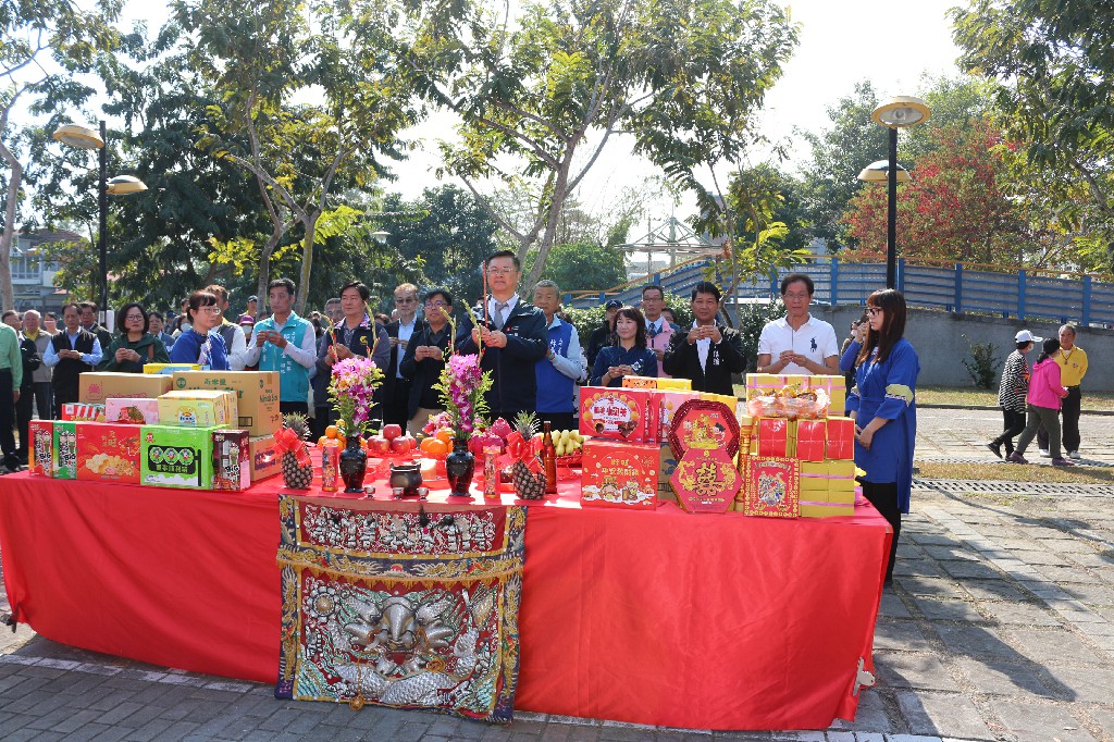 ↑圖說:副市長羅達生帶領社區民眾及客家鄉親,逾百人上香祭拜祈求工程順利(圖片來源:高雄市客家事務委員會)