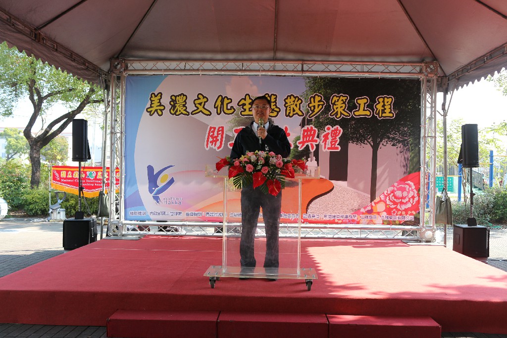 ↑圖說:羅達生表示美濃文化散步策是市府在美濃建設中很重要的工程,結合湧泉特色、客家文化、綠色生態(圖片來源:高雄市客家事務委員會)