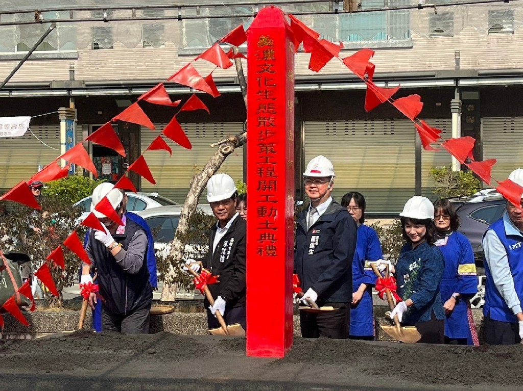 由高雄市政府客家事務委員會主辦的「美濃文化生態散步策工程」開工動土典禮,1月27日上午在美濃雙峰公園隆重舉行,在熱鬧的客家八音樂曲聲中,及穿著傳統藍衫的禮賓生引導下,副市長羅達生帶領社區民眾及客家鄉親,逾百人上香祭拜祈求工程順利,議員朱信強、林義迪等人皆到場祝賀。