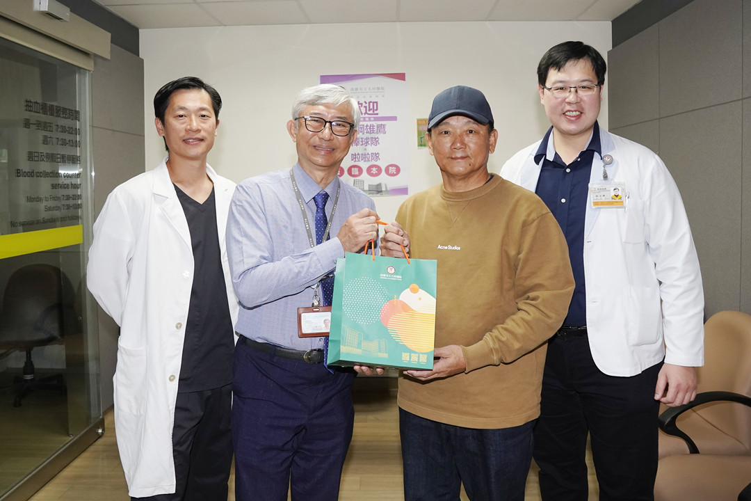 ↑圖說:傅尹志(左2)致贈紀念品給台鋼雄鷹總教練洪一中(右2)。(圖片來源:大同醫院提供)