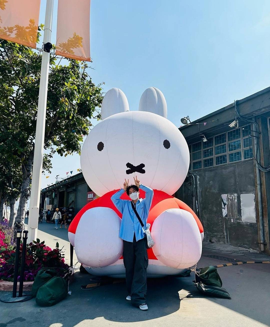 ↑圖說:銀赫逛駁二特區,帥氣地與變形金剛合照(圖片來源:翻攝自銀赫IG)↑圖說:銀赫與米飛兔可愛合照(圖片來源:翻攝自銀赫IG)