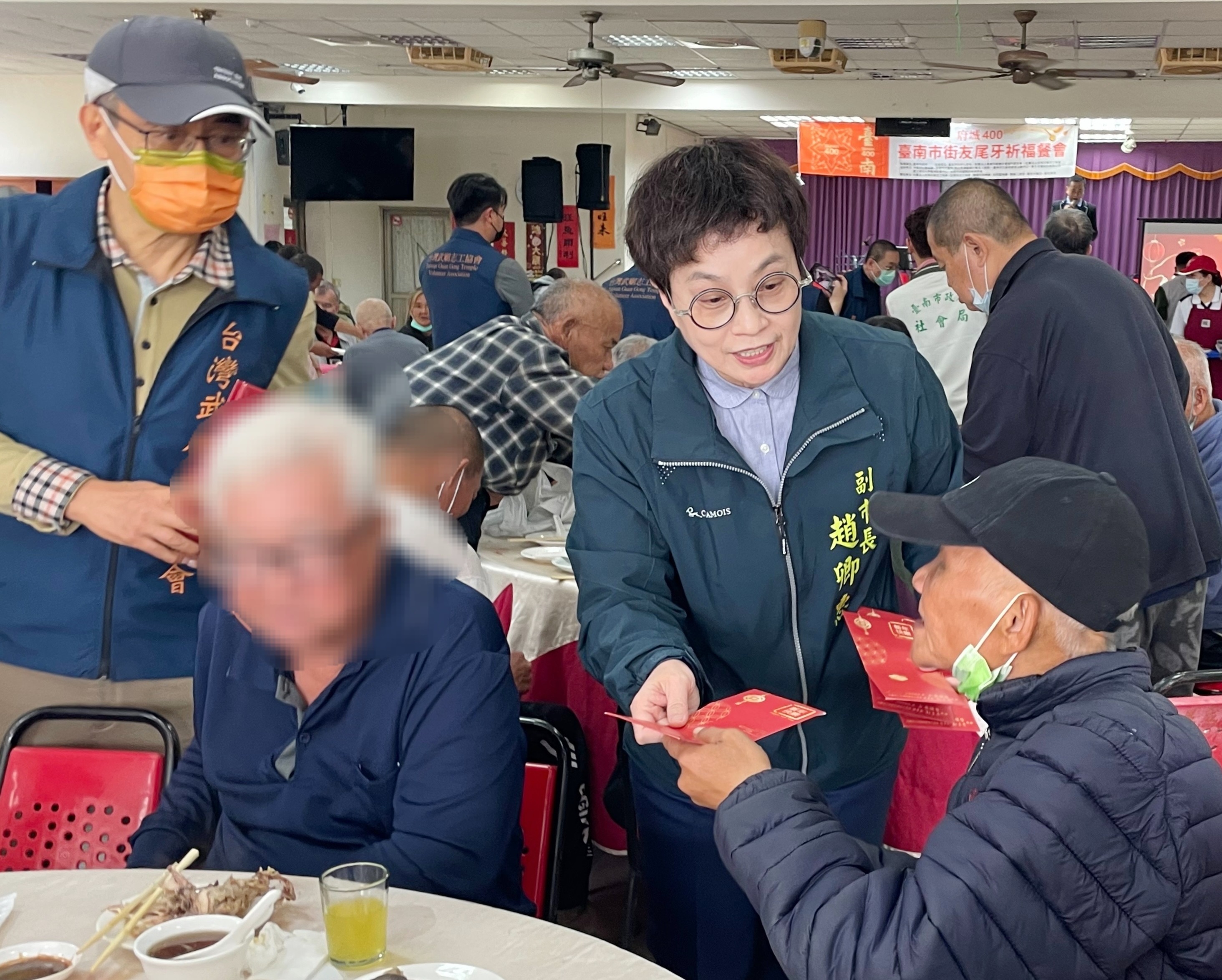 農曆春節將至,台南市政府日前舉辦街友尾牙祈福餐會,邀請百位街友團聚圍爐,並由台南副市長趙卿惠代表發放春節紅包、致贈禦寒衣物等民生物資,以趕在春節到來前為街友送來溫暖與祝福。