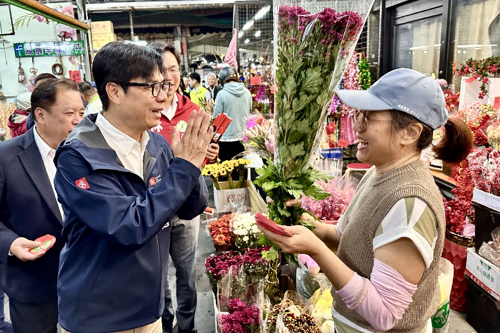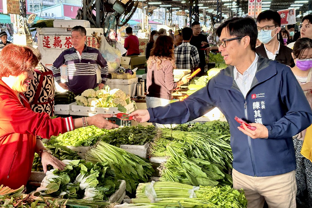關心年前農產供應情形 陳其邁走訪果菜市場拜早年