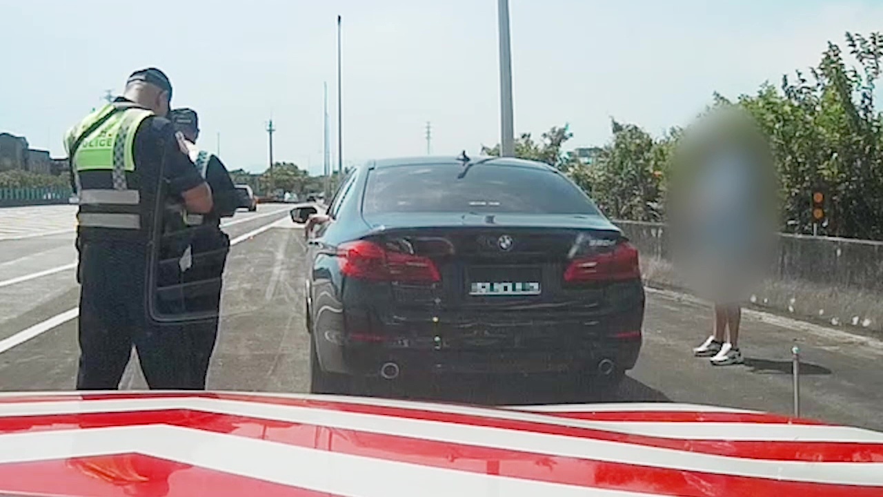 ↑圖說:小客車後車牌遮蔽行駛在國道被民眾舉報,國道公路警察追蹤尾隨後將其攔下(圖片來源:國道公路警察局提供)