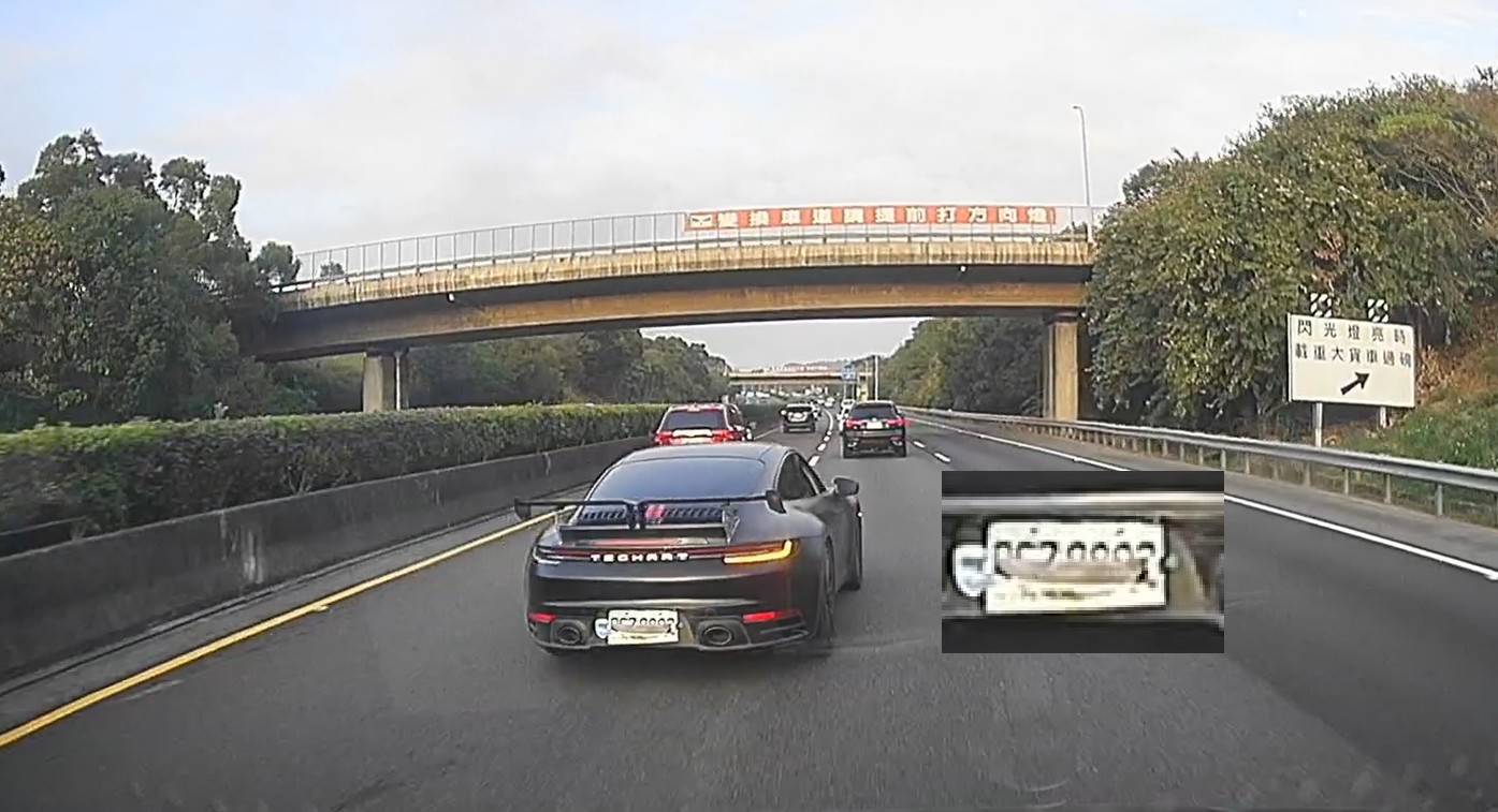↑圖說:民眾檢舉遮蔽車牌案例,無法辨識車牌難以取締,應通報國道警察前往攔查(圖片來源:國道公路警察局提供)