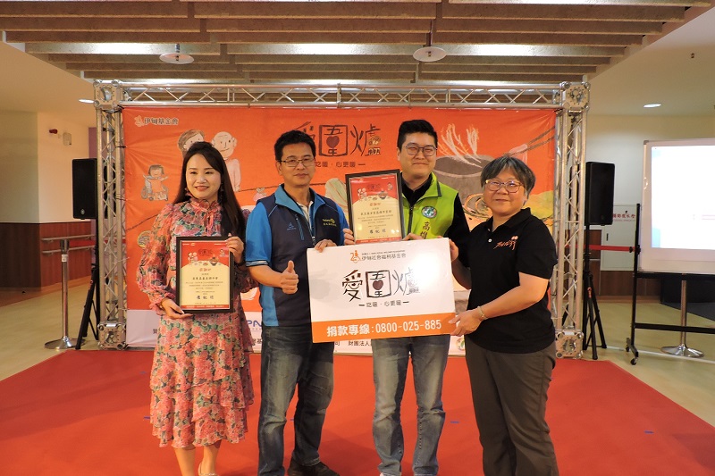 ↑圖說:燕巢家園主任楊意賢(右1)頒發感謝狀,感謝在地企業支持愛圍爐(圖片來源:伊甸基金會提供)
