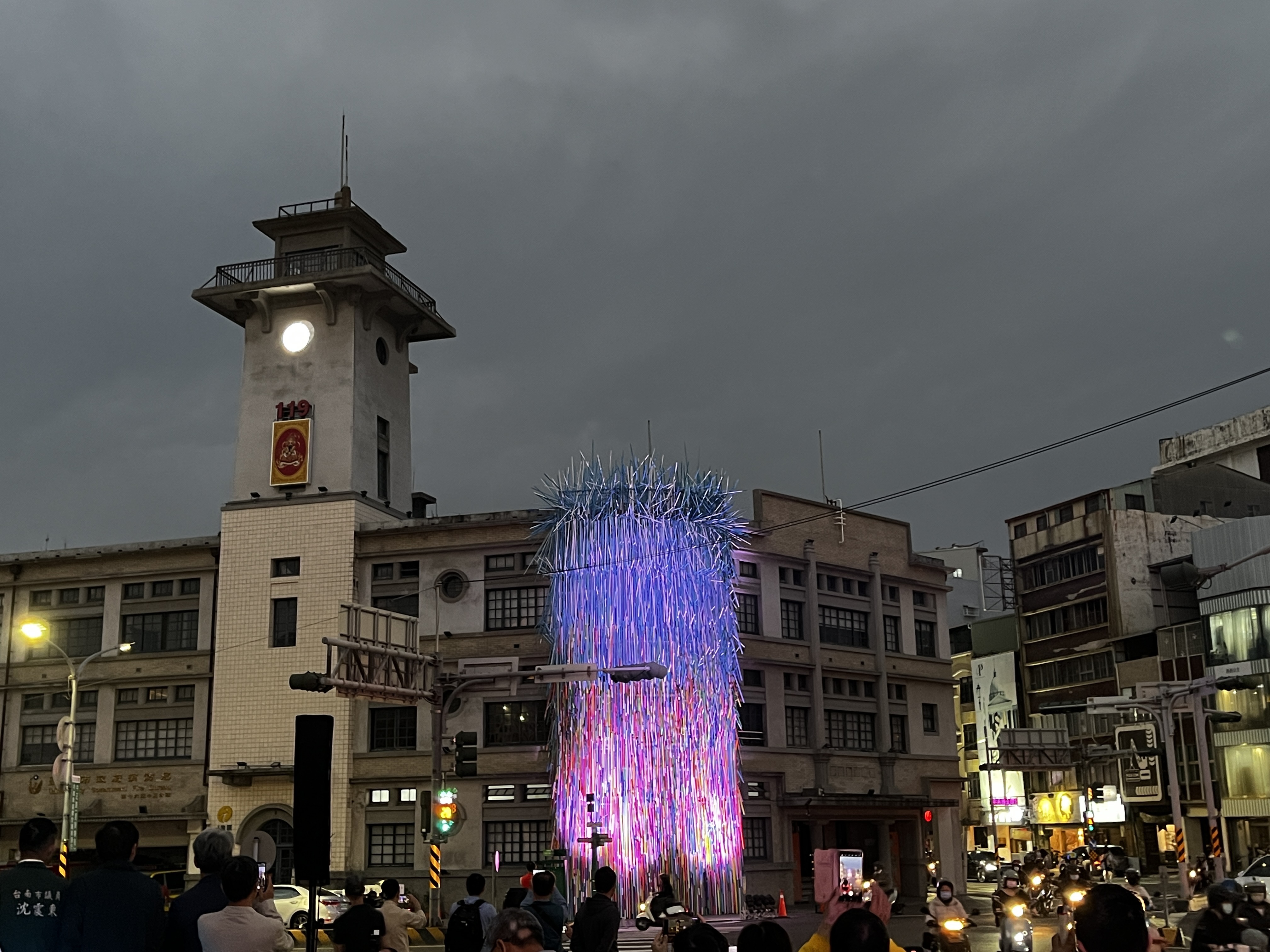 台南市副市長葉澤山日前前往消防史料館,為埕南燈區「流動的埕事」裝置藝術啟燈。文化局表示,台南歷史的發展與水文環境緊密關聯,水之於消防局而言,更是不可或缺的重要元素。「流動的埕事」以水象徵守護的意象,其大面積的鮮明色彩搭配夜間燈光效果,吸引許多民眾前來觀賞。
