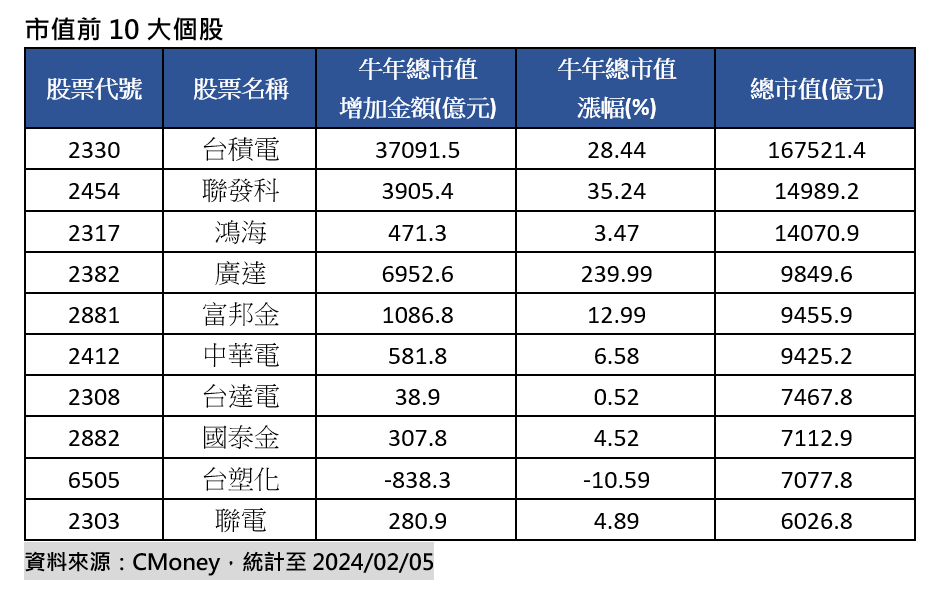 而三大法人兔年對台股的態度,除了自營商提款3291.63億元,外資與投信連袂回補台股,外資由前一年的賣超轉為買超1791.07億元,投信則是回補2591.79億元,三大法人兔年合計買超1091.23億元。