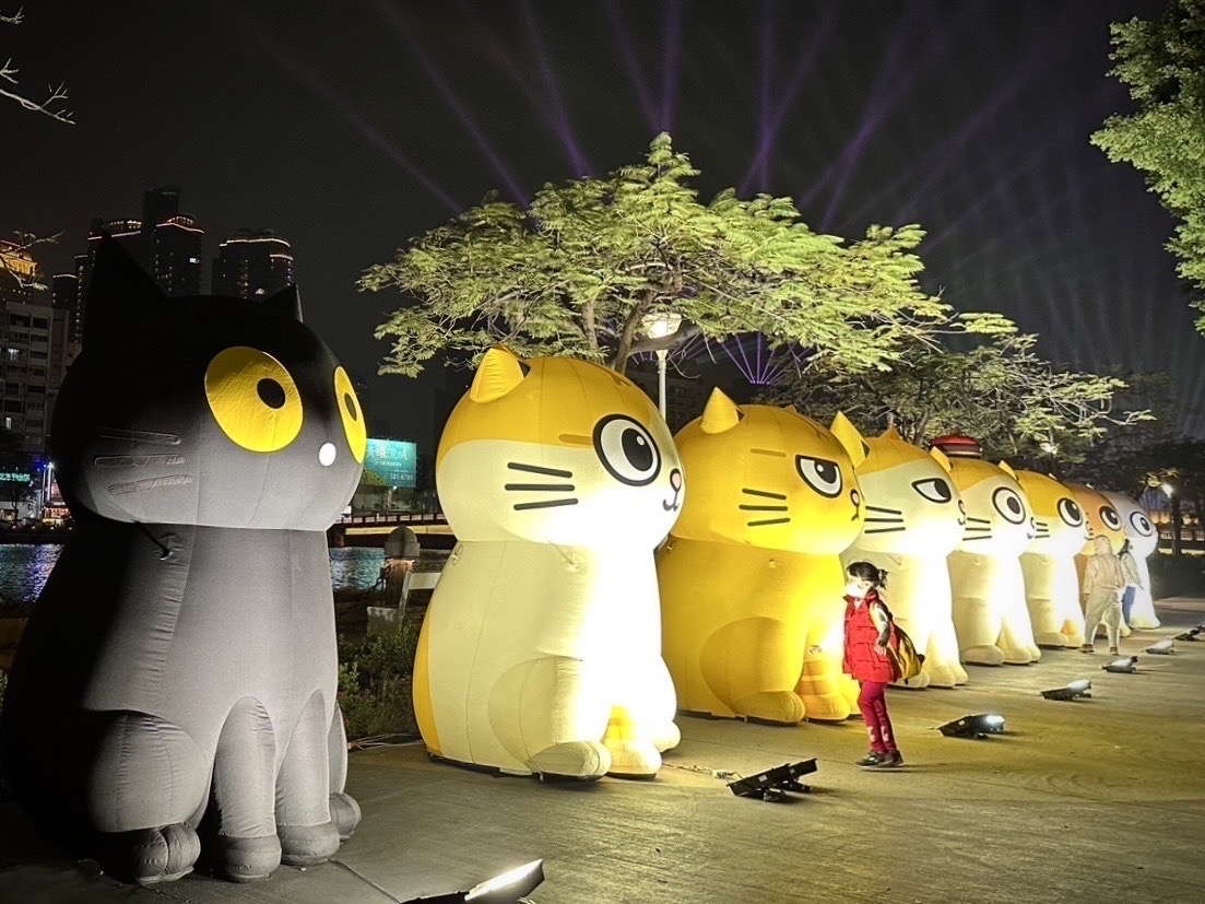 這次也特別在愛河風景區河西路設置黃阿瑪及OPEN!家族成員等裝置作品,與愛河灣前的兩隻黃色小鴨相互呼應,包括「黃阿瑪的後宮生活」八隻可愛的小貓、「OPEN!家族」成員的LOCK醬、Please美眉、條碼貓、YAMAHA機車Vinoora等12組充氣裝置,歡迎大家一同沿著愛河,再至愛河灣及16-18號碼頭看小鴨、玩樂園、吃美食,有關「2024 Kaohsiung Wonderland 冬日遊樂園」更多資訊,請至「高雄旅遊網」官網(https://khh.travel/zhtw/event/news/5714)、臉書及IG查詢。