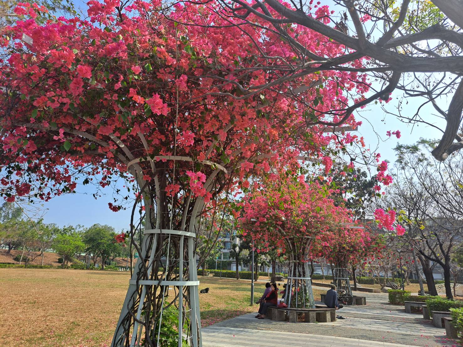↑圖說:經過造型的九重葛有如一束束的捧花(圖片來源:高雄市工務局提供)