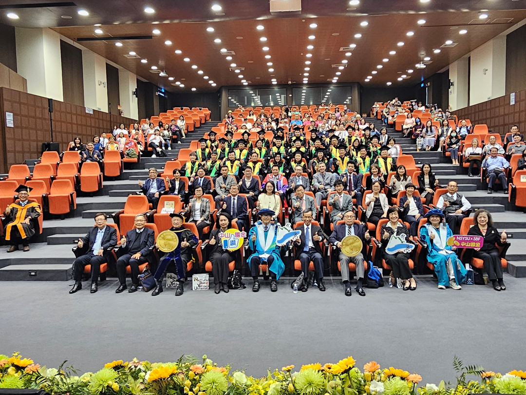 金融監督管理委員會主任祕書蔡福隆、國發會綜合規劃處處長張惠娟、臺灣銀行董事長呂桔誠等貴賓也出席見證致賀。副校長兼院長郭志文致贈畢業生棒球外套和球帽,希望這支由大學、政府及企業聯手培育的金融國家隊,能夠強棒出擊,引領全世界。他表示,中山國金學院所培育出的人才,正是這一新時代所需的先鋒力量。