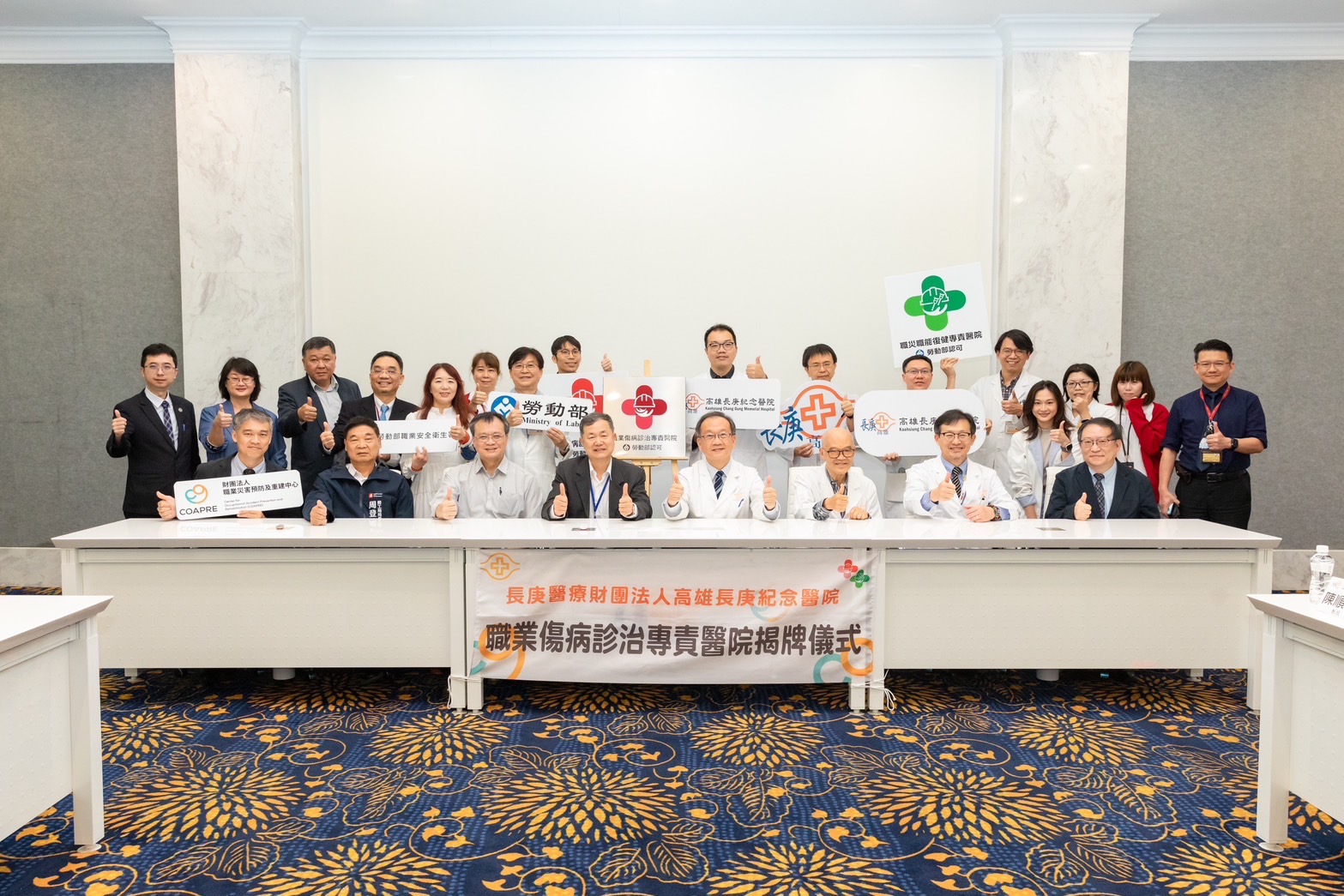 高雄長庚紀念醫院113年榮獲勞動部認證為「職業傷病診治專責醫院」,20日下午於高雄長庚醫學大樓6樓簡報室辦理揭牌儀式;邀請勞動部政務次長許傳盛、勞動部職業安全衛生署署長鄒子廉、財團法人職業災害預防及重建中心副執行長吳政龍、高雄市勞工局周登春局長、勞動力發展署高屏澎東分署分署長郭耿華和勞動部勞工保險局高雄市辦事處李淑敏主任和高雄長庚副院長龔嘉德、職業醫學科主任王金洲和團隊成員共同參與揭牌儀式。