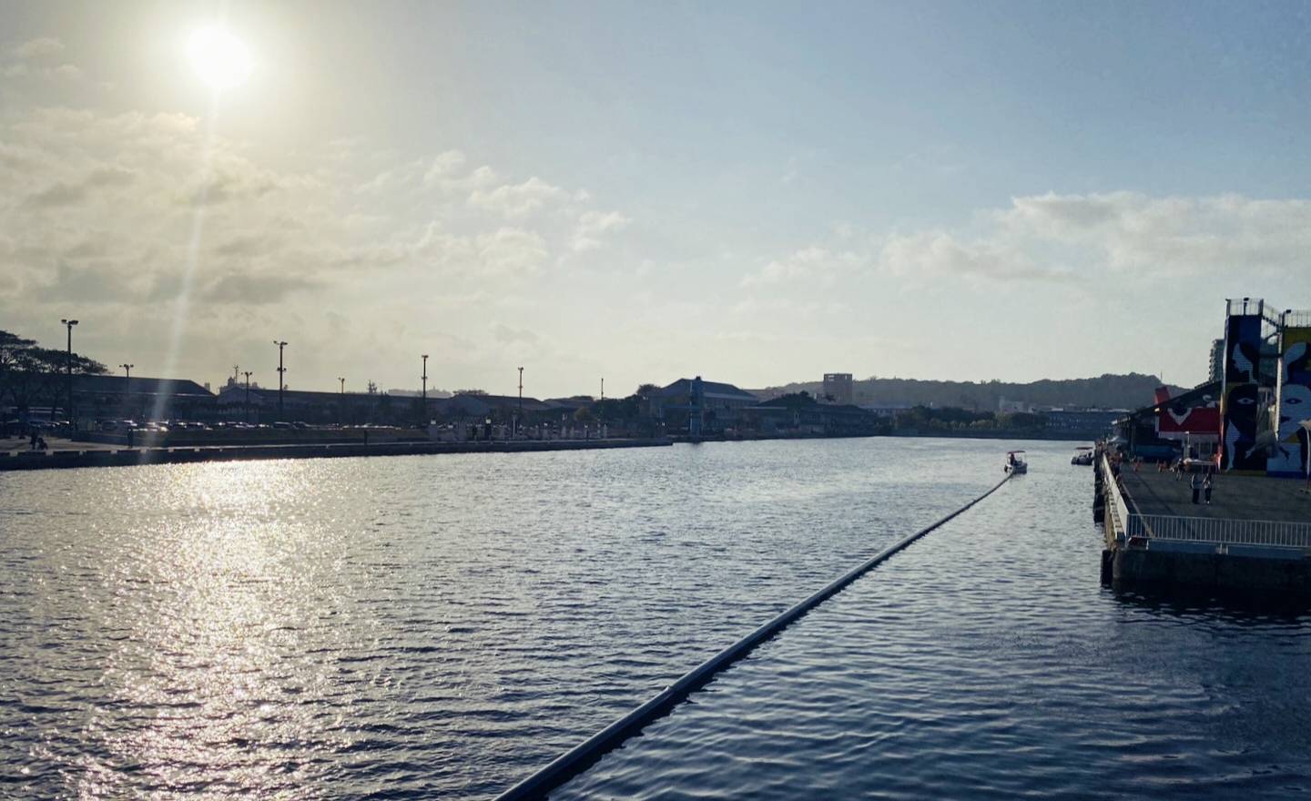 ↑圖說:「港快跑鴨!」使用攔阻密度較佳的充氣式攔油索圍成小鴨賽道,小鴨無空隙可漂流出去(圖片來源:高雄市青年局提供)