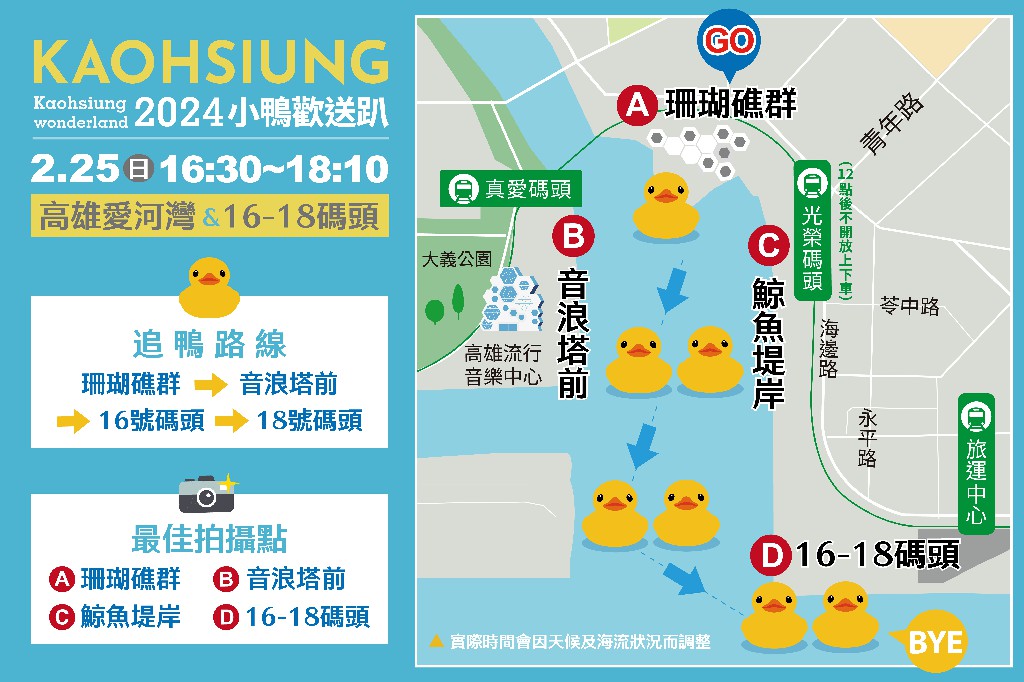 ↑圖說:小鴨歡送趴路線圖(圖片來源:高雄市觀光局提供)