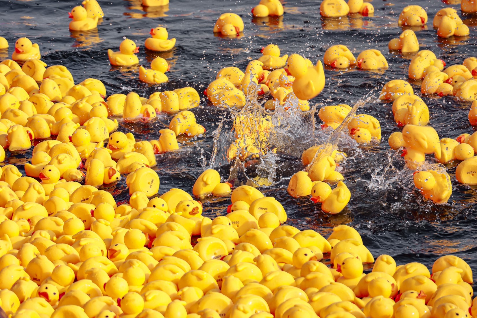「港快跑鴨!」小鴨漂流摸彩活動24日熱鬧登場,在高雄市長陳其邁鳴笛下,1萬5000隻小鴨投入大港橋水域,形成壯觀療癒的小鴨漂漂河景象,最先抵達終點的冠軍小鴨編號為00971,擁有其對應編號的幸運兒可獲得「高雄-東京雙人商務艙來回機票」。陳其邁也宣布,其中1,000隻作為民眾在臉書直播分享小鴨照片及故事的獎品,其他小鴨將送給偏鄉學童。
