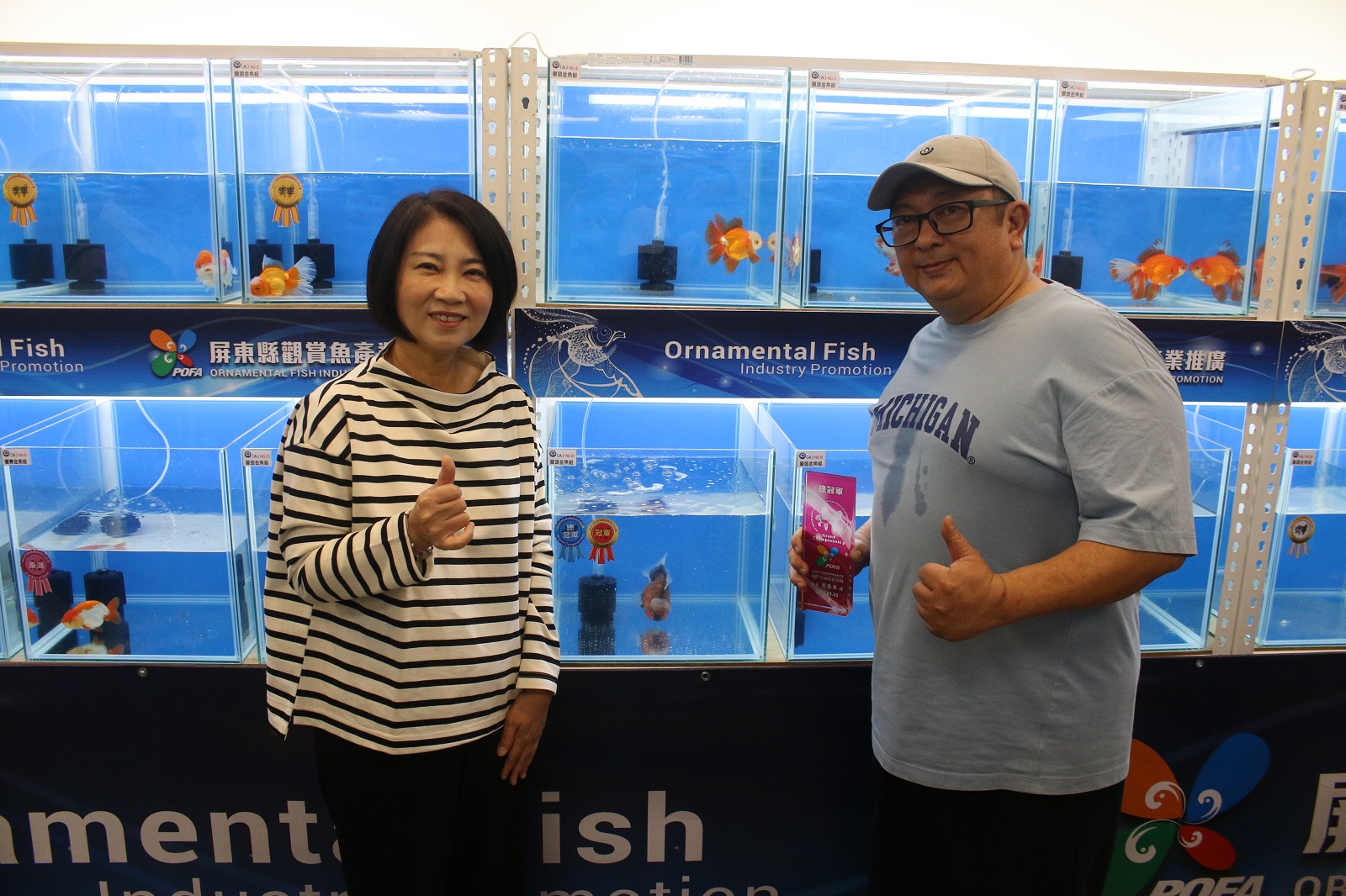圖說:周春米與2024國際觀賞魚比賽金魚冠軍選手。(圖片來源:屏東縣政府提供)