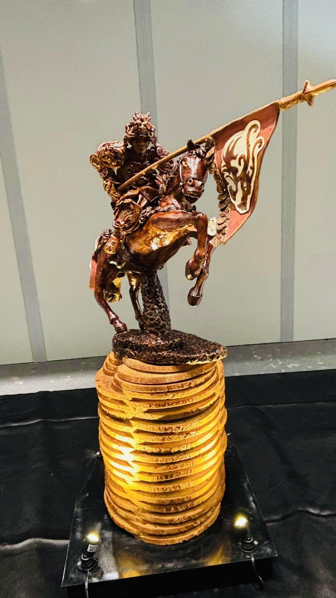 ↑圖說:一馬當先 龍年行大運 賴毓宏老師的作品被現場民眾不慎被破壞,修復之後仍拿到銀牌(圖片來源:國立高雄餐旅大學提供)