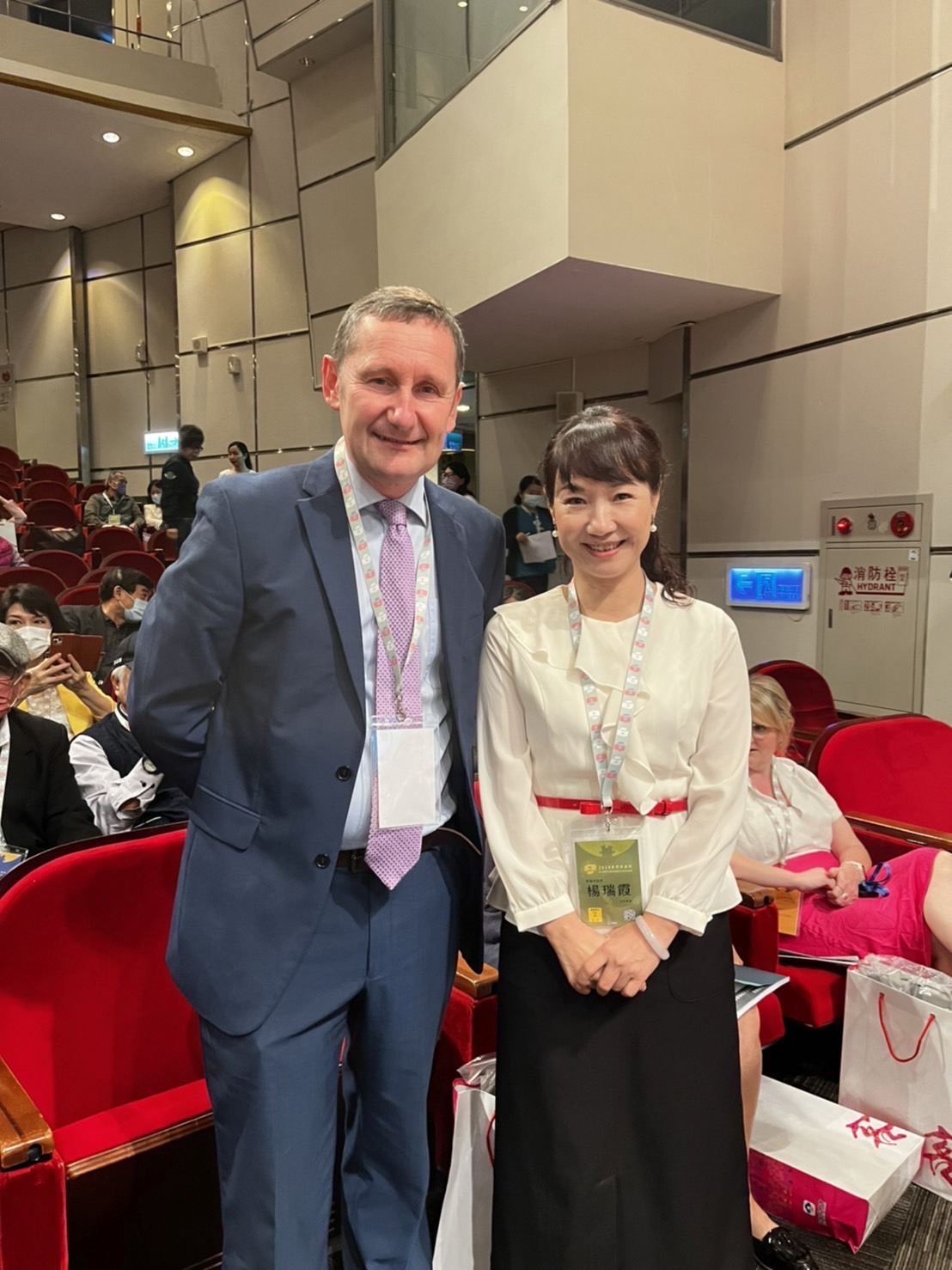 ↑圖說:Ysgol Gymunedol Plascrug Community School小學校長Berian Lewis與高雄市政府客委會主委楊瑞霞合影(圖片來源:高雄市客家事務委員會提供)