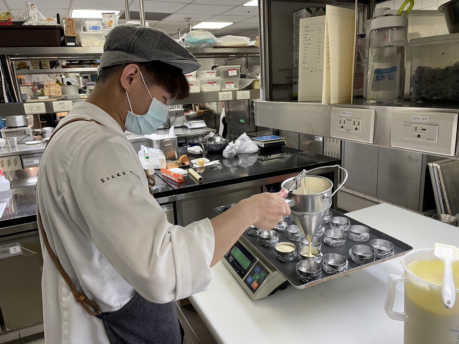 ↑圖說:就讀烘培系江同學,在御盟晶英酒店實習西點烘培,發揮所學。(圖片來源:高雄市青年局提供)