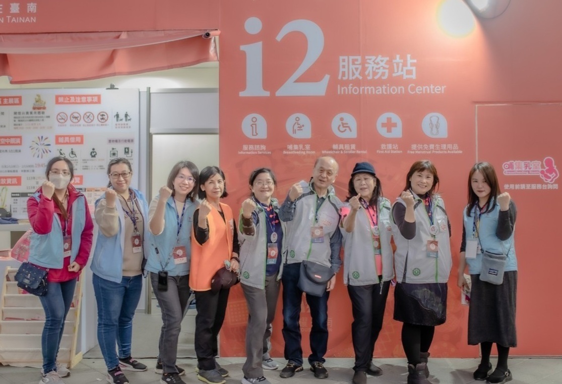 ↑圖說:草間俊介於服務站與志工合影 (圖片來源:台南市社會局提供)