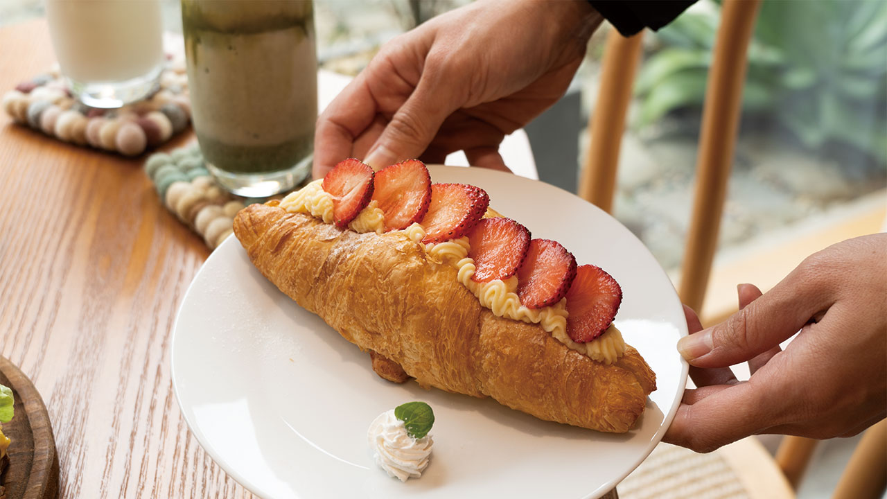 「草莓卡士達可頌」可頌皮外酥內軟,搭配卡士達醬甜度不會很高,草莓很甜不會有酸感,這個季節就是要吃爆啊!「草莓抹茶奶油可頌」抹茶奶油的味道也很不錯,甜度不會很高,抹茶的香氣清香不苦,就連不愛吃抹茶的也會喜歡。