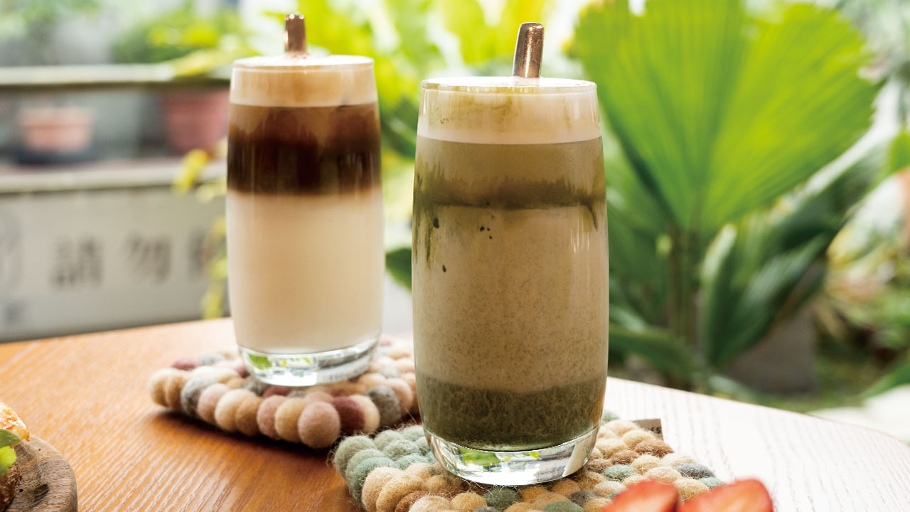 ↑圖說:左為「蜜香玫瑰拿鐵」、右為「京都宇治抹茶拿鐵」。(圖片來源:日日美食提供)