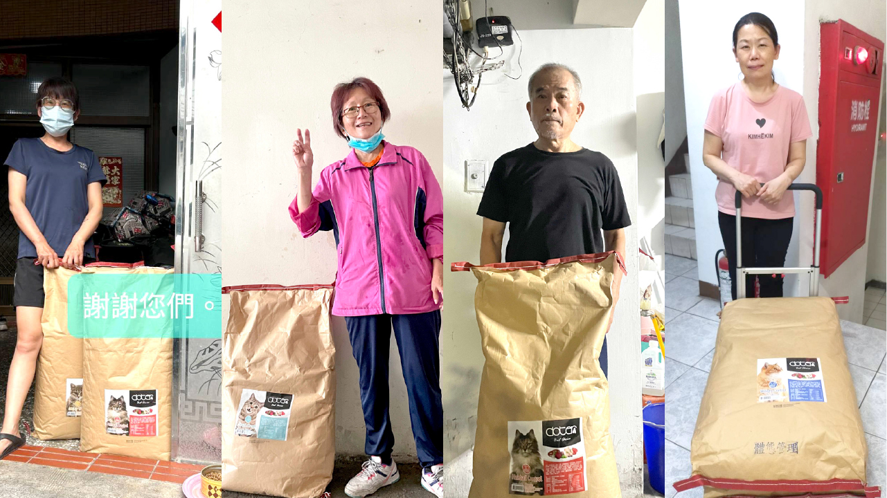 ↑圖說:2023年GX歌迷後援會首次嚐試「愛心飼料應援大花籃」,募得犬糧340公斤、貓糧300公斤、貓砂60ml,分別捐贈給高雄市社團法人愛狗人協會、專於社區內推動貓保TNR由個人做起、自里貓自里顧的「我的貓鄰居計畫」之貓保志願工作者們。(圖片來源:GX歌迷後援會)