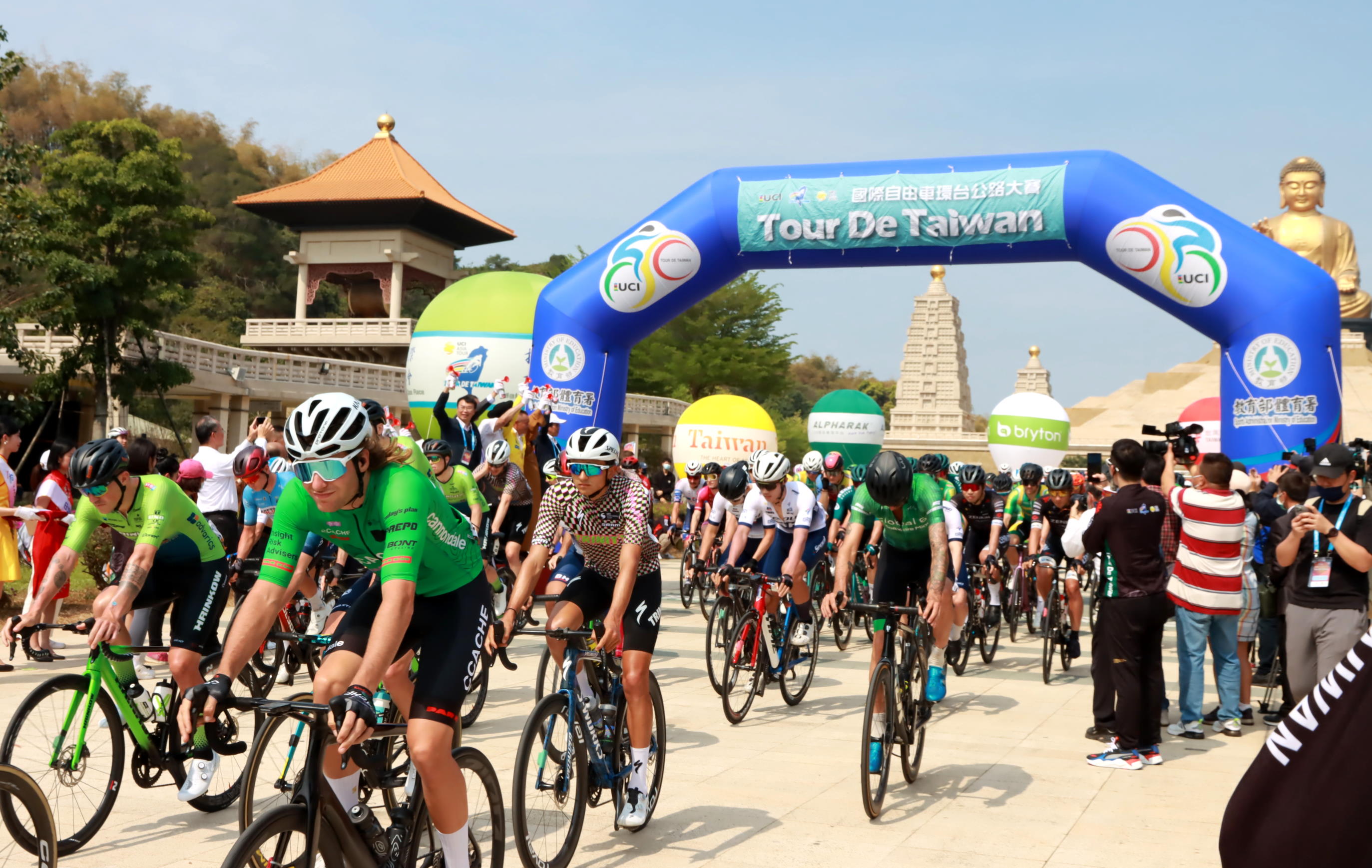 ↑圖說:今年國際自由車環台賽高雄站車隊由佛陀紀念館出發。(圖片來源:高雄市運動發展局提供)