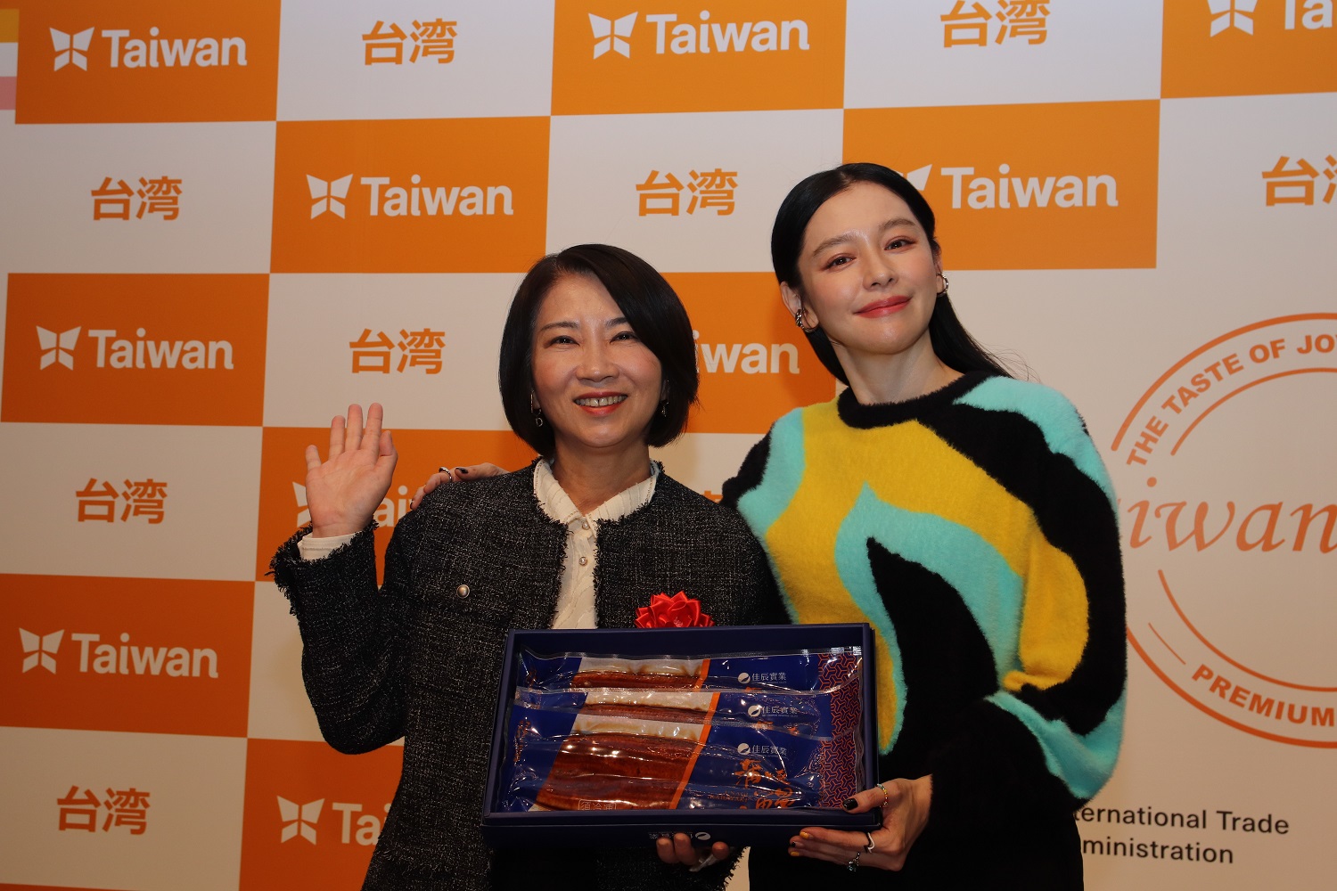 ↑圖說:屏東物產於東京食品展前記者會出風頭,縣長周春米為屏東物產加油。(圖片來源/屏東縣政府提供)