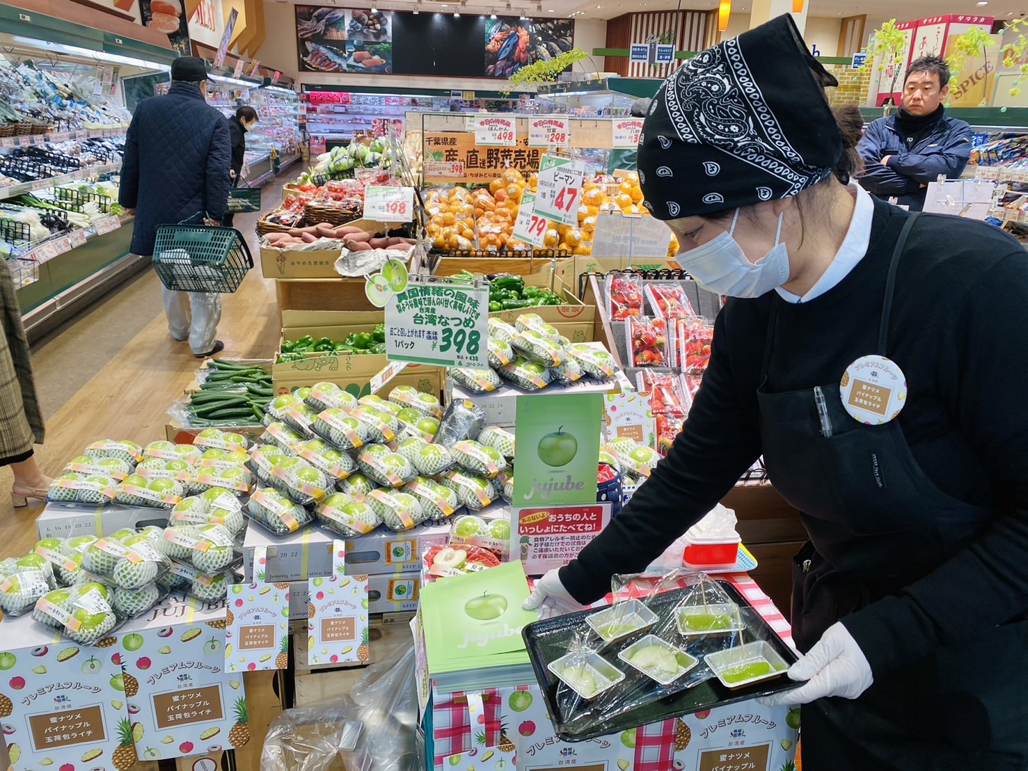 高雄市農業局長張清榮表示,高雄蜜棗上架關東地區三大通路,分別為Sendou、Sun Bel’x以及Topmart連鎖超市,分店數總計超過75家。三家超市自前年來台拜訪過產地後,就非常喜歡高雄水果,持續合作至今,超市從今日起展開試吃活動,將以蜜棗打頭陣,未來跟進鳳梨、玉荷包荔枝等品項,預計辦理30場次,希望能讓日本消費者更加認識高雄農產奇蹟般的好滋味。