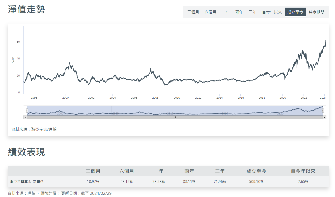 由鄭行甫操盤的瀚亞菁華基金,淨值也不斷創新高,截至今年2月底為止,累計一年報酬率高達73.58%,表現亮眼。