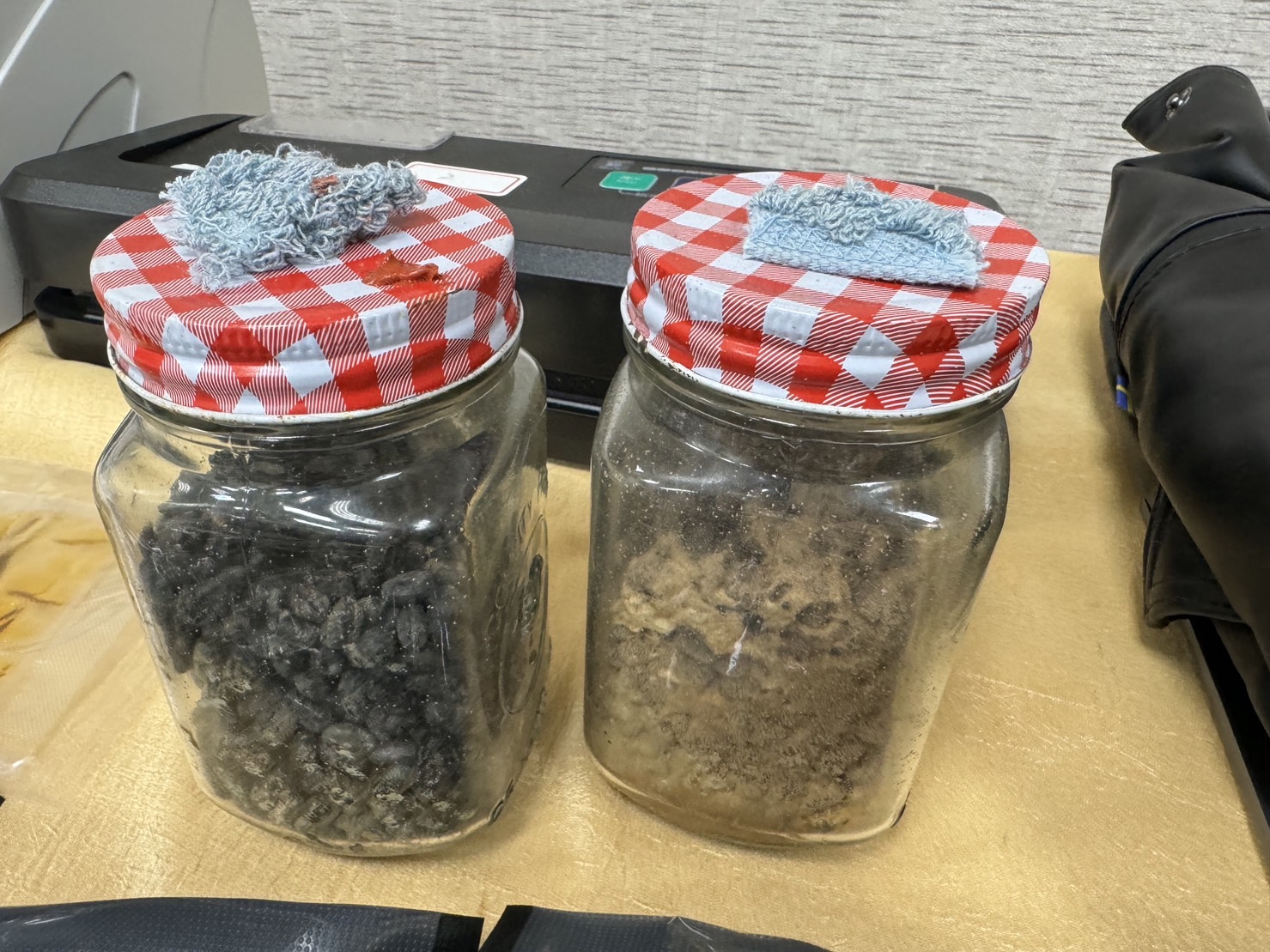 ↑圖說:迷幻蘑菇培養罐(圖片來源:航警局高雄分局提供)