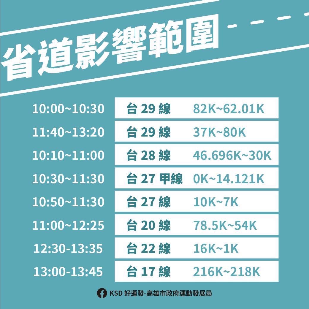 ↑圖說:省道各時段影響範圍(圖片來源:高雄市運動發展局提供)