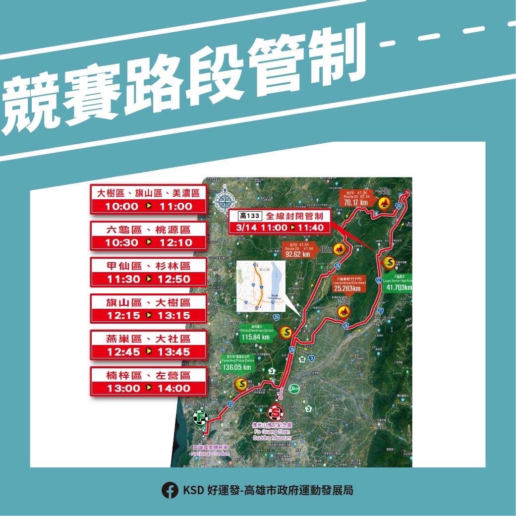 ↑圖說:競賽路段管制時間(圖片來源:高雄市運動發展局提供)