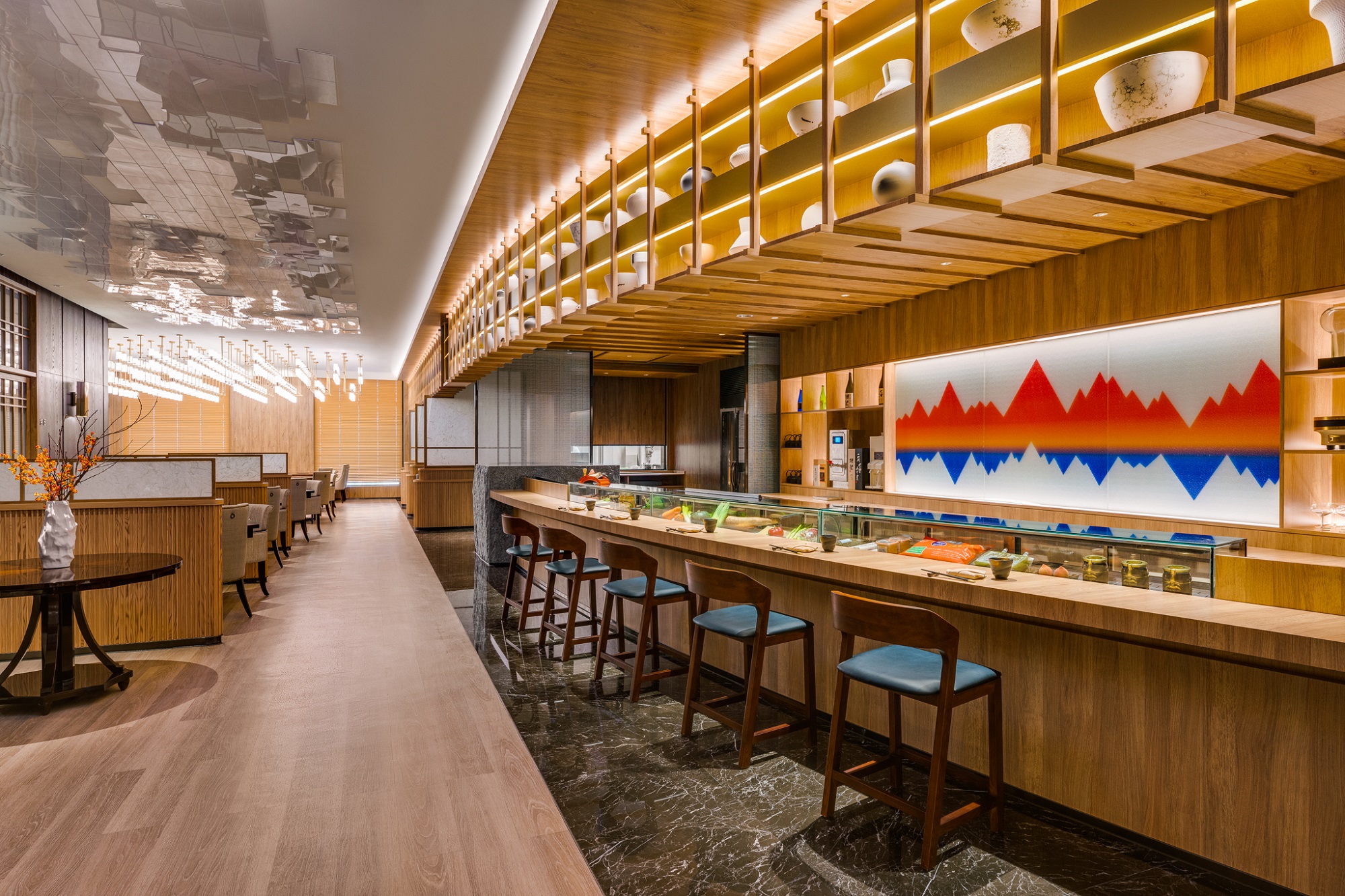 京樂日本料理餐廳由日籍料理長渡邊正紀執掌,首度與擁有150年歷史、專以花酵母釀造的日本武之井酒造聯手,於3月29日推出櫻花餐酒饗宴,由侍酒師精選五款不同花種酵母所釀造的清酒,如「櫻花酵母」、「山茶花酵母」、「向日葵酵母」及「大波斯菊酵母」等,以溫潤香醇的吟釀清酒昇華料理的旨味。渡邊料理長依據清酒的風味,設計出相得益彰的會席美饌,包含台物(生魚片)「薄切櫻鯛 鹽昆布 土佐醋果凍」,特選盛產於春季的「櫻鯛」,外觀呈現粉嫩的櫻花色澤,魚肉細滑甘美,渡邊正紀料理長保留櫻鯛的鮮味,佐以鹽昆布及土佐醋果凍,清新爽口。