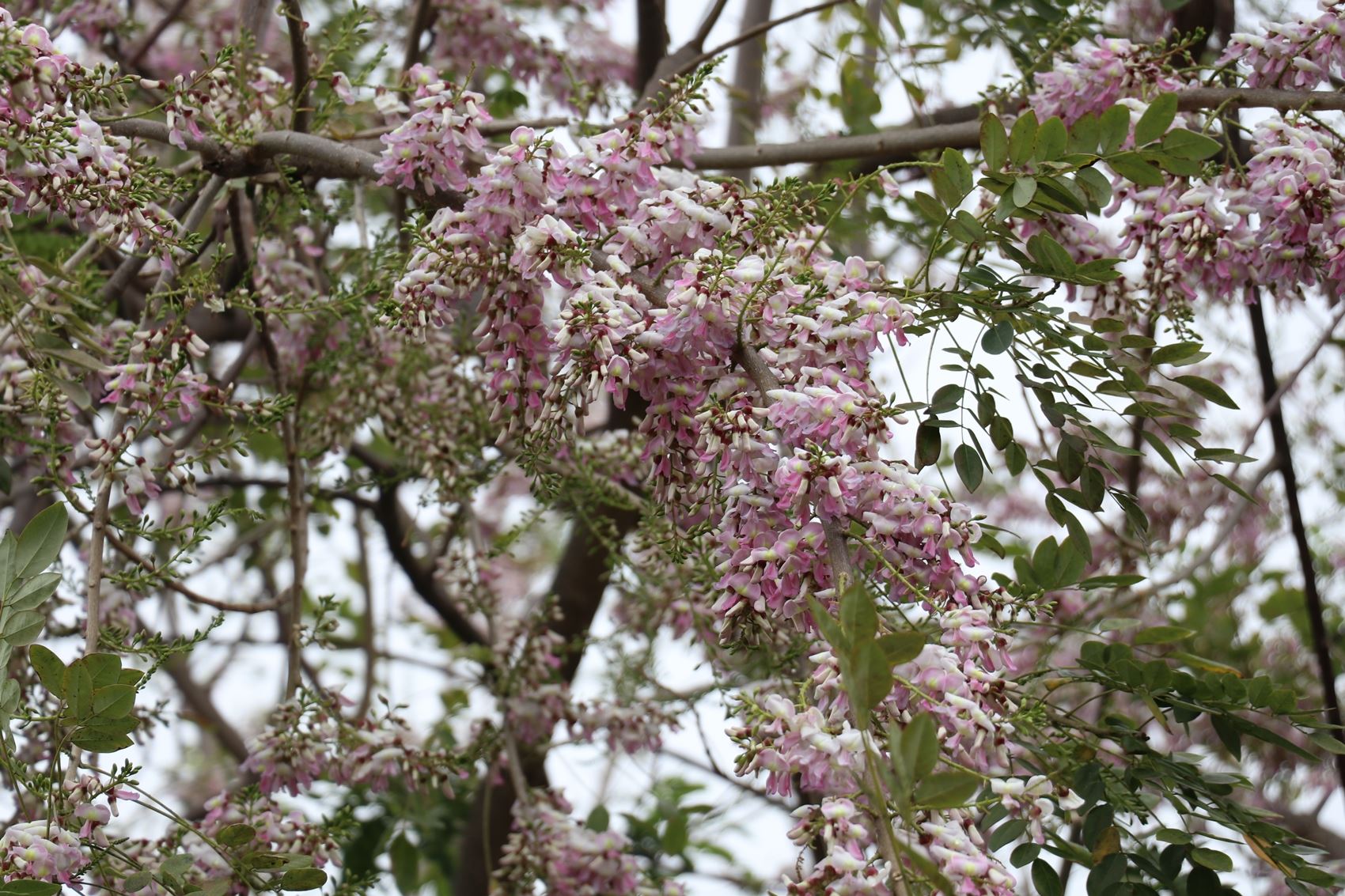 嘉義市建設處表示, 現正是來北香湖公園散步賞花的好時機,苦楝樹、南洋櫻、羊蹄甲盛開迎賓;尤其是北香湖公園北側靠世賢路的南洋櫻,盛開時全株無葉,繁花滿樹,大片粉紅花海伴隨著春風綻放,為都市景觀增添一抹迷人的色彩。