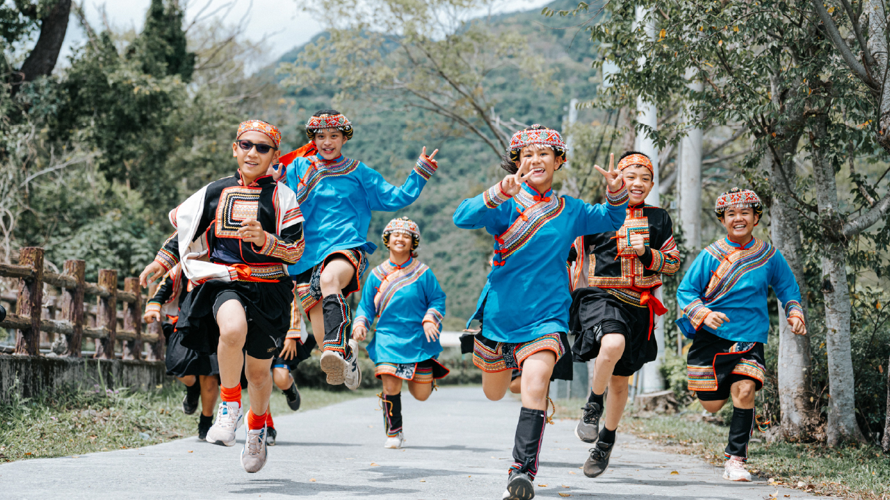 ↑圖說:畢業學童穿著自身族服,在校園留下青春畢業合影,圖為臺東縣桃源國小畢業生。(圖片來源:原鄉孩童畢業照圓夢計畫單位提供)