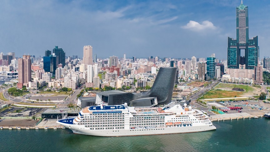 ↑圖說:繼去年後將再靠泊高雄港的銀海郵輪銀妙號。(圖片來源:高雄港務分公司提供)