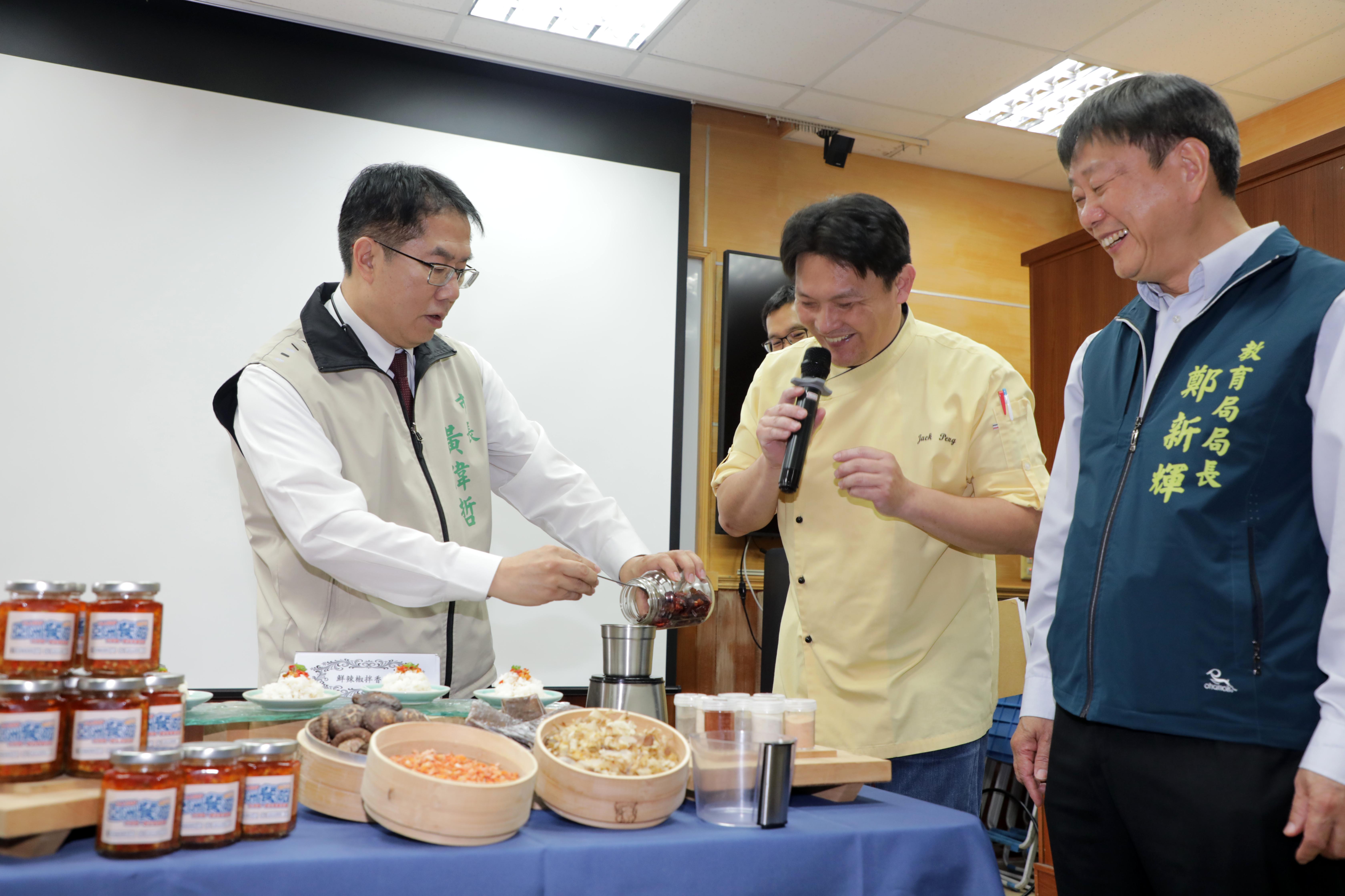 ↑圖說:市長黃偉哲與專業主廚一同自製辣椒醬 (圖片來源:台南市政府提供)