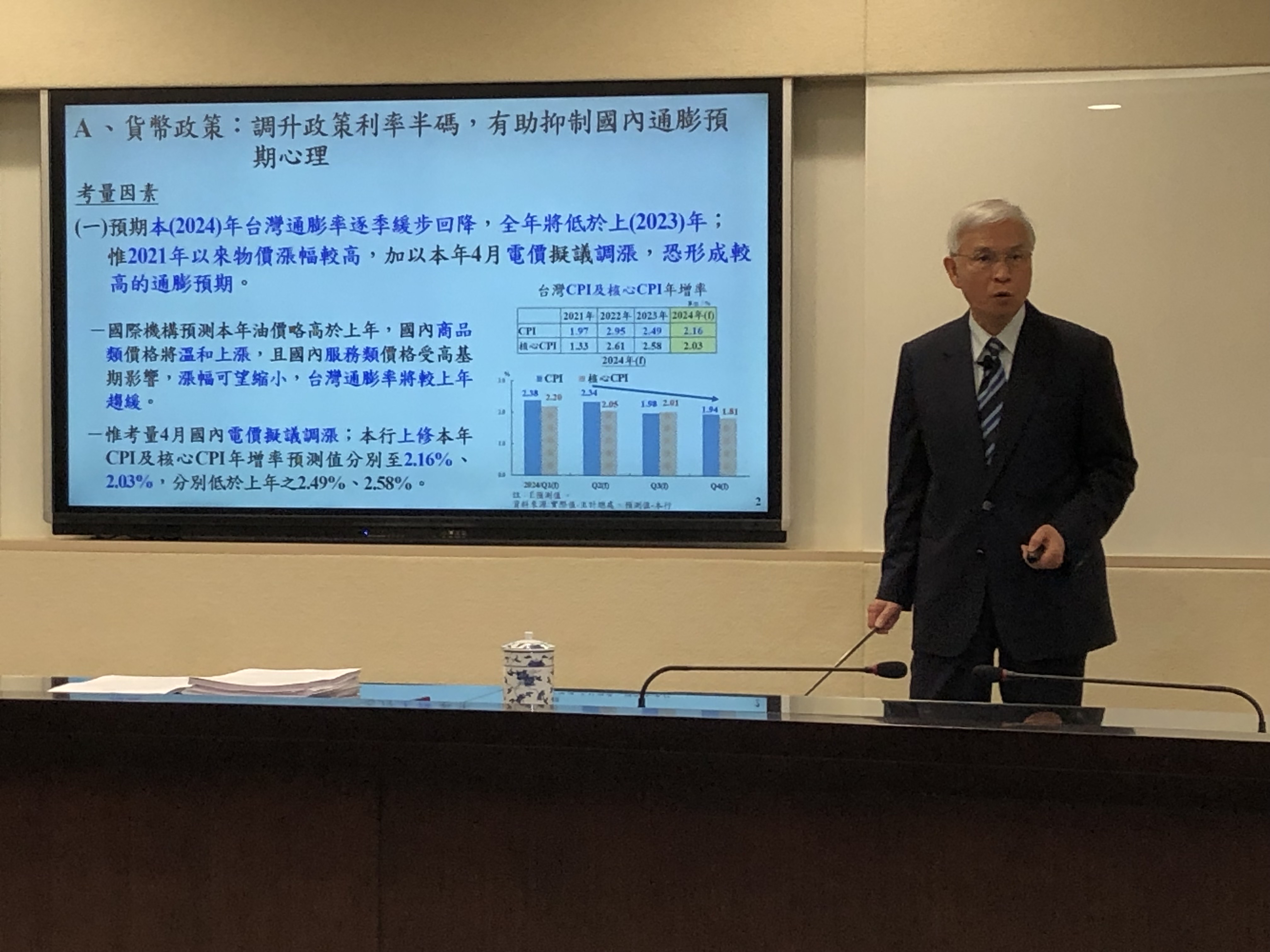 央行強調,考量4月國內電價擬議調漲,上修CPI及核心CPI年增率預測值分別至2.16%、2.03% ,分別低於去年的2.49%、2.58%。