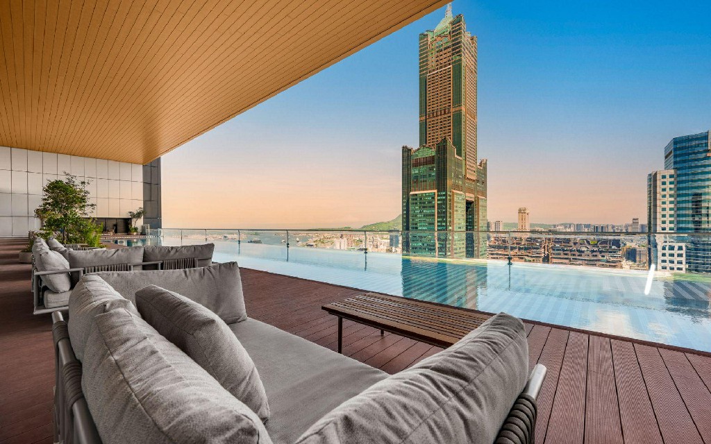↑圖說:高雄承億酒店擁有全球唯一高空懸挑透明無邊際泳池(圖片來源:承億酒店提供)