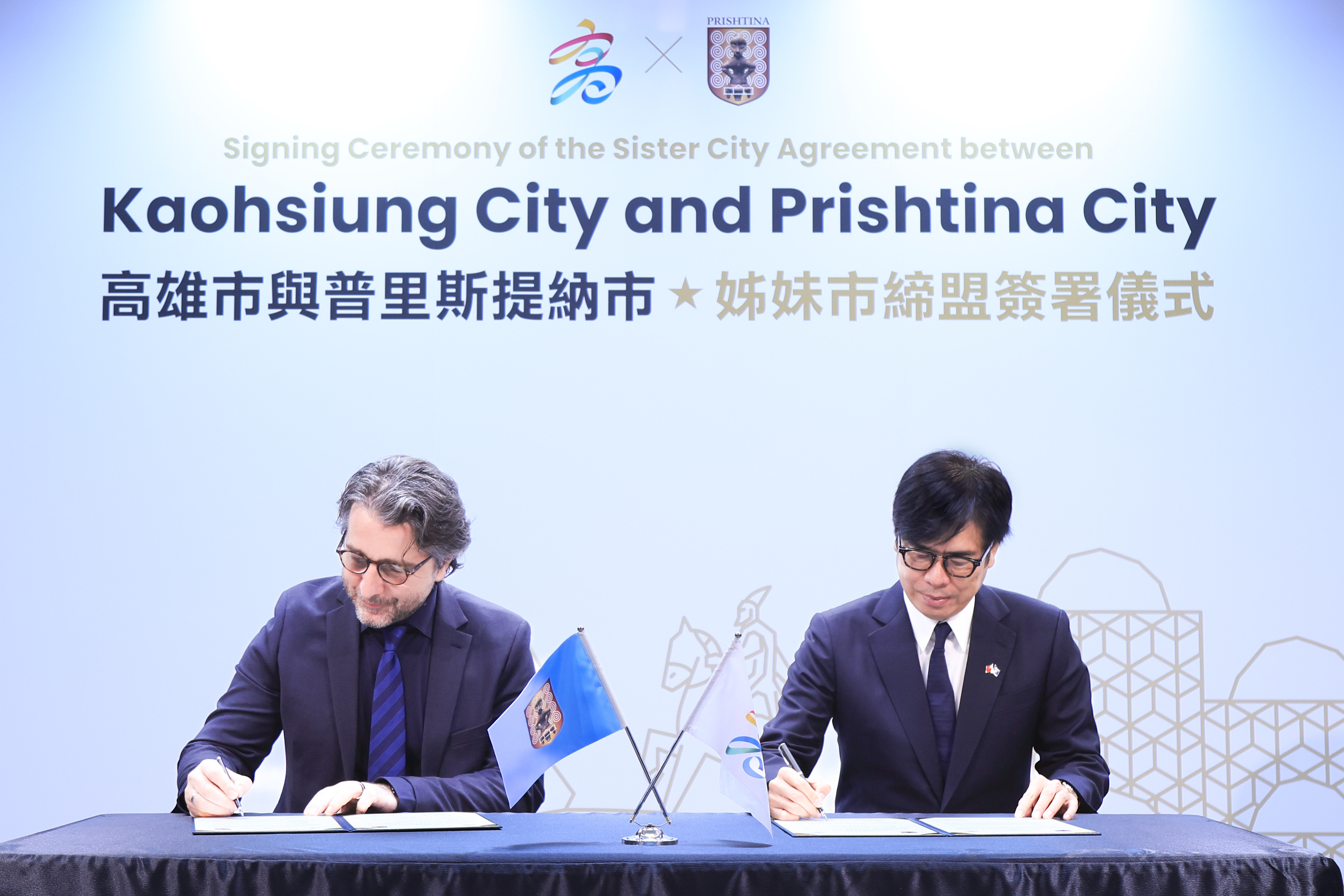 科索沃首都普里斯提納市市長拉瑪(Përparim Rama)22日上午拜會高雄市長陳其邁,並簽署姊妹市協定,普里斯提納市成為高雄第39個姊妹市及友好夥伴城市,高雄也成為普里斯提納在亞洲的首個姊妹市,未來將於智慧交通、智慧醫療、數位轉型、文化及教育等領域推動實質合作。陳其邁期待雙方未來在智慧城市等領域能發展密切合作關係,加速推動科技、資通訊產業及人才交流。