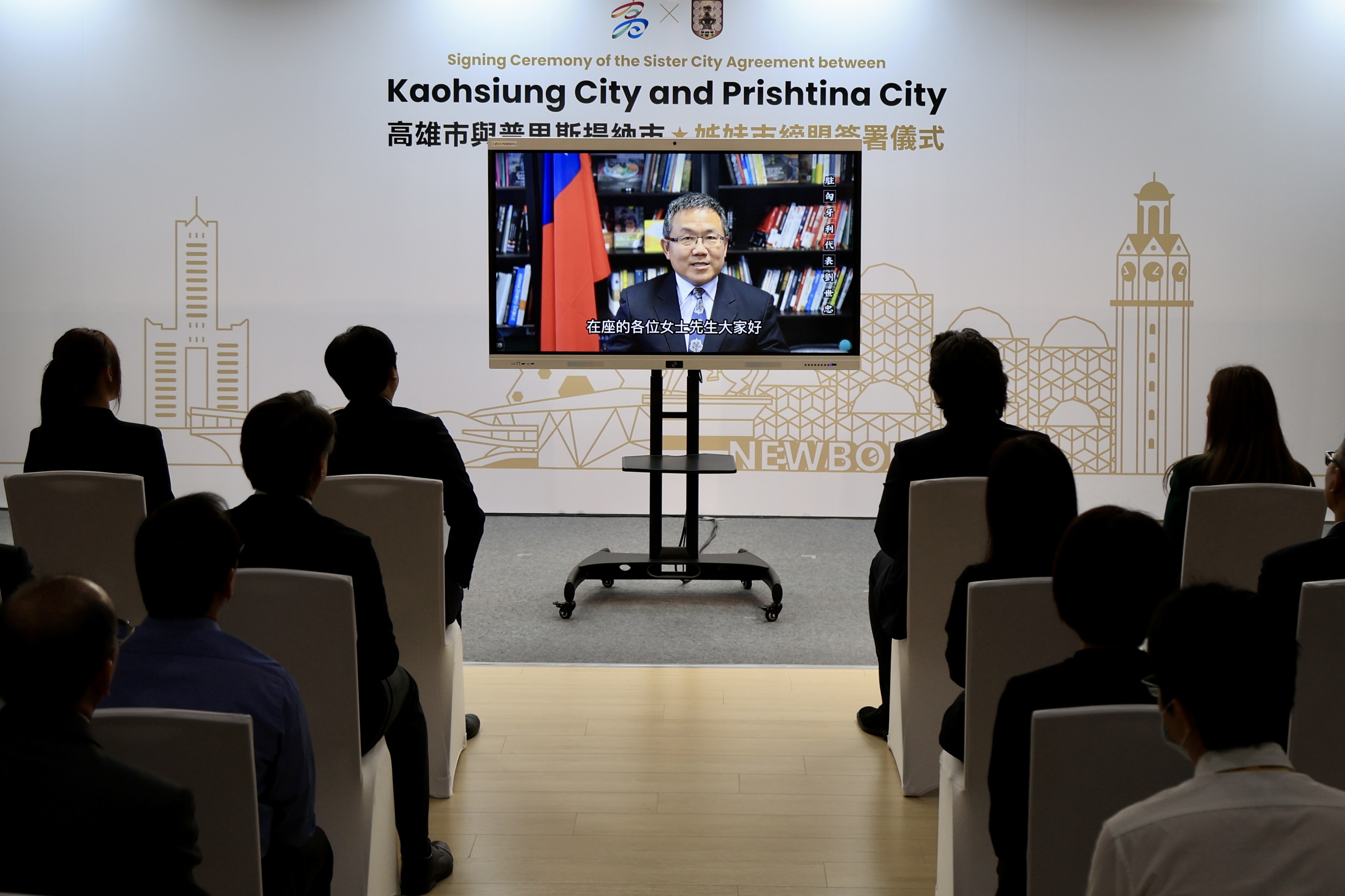 劉世忠以視訊方式參與締盟儀式表達祝福表示「非常榮幸見證兩市締盟這歷史性的一天,雖然台灣與科索沃有千里之遙,拉瑪市長率領團隊親訪高雄,能夠親自了解高雄的進步,拉近高雄與普里斯提納的關係,也讓台灣與巴爾幹半島的連結更加緊密。」