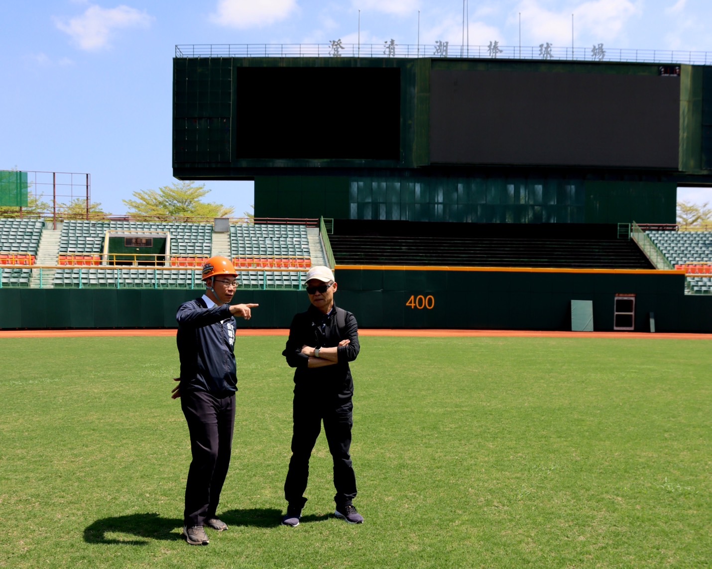 中華職棒大聯盟秘書長楊清瓏25日由高雄市運動發展局陪同視察澄清湖棒球場,主要勘查球場比賽區域,紅土及草皮持續養護,以符合職棒辦理賽事為標準,經中職官方專業評估場內草地及紅土符合聯盟規定,期待給球迷及球員更舒適的球場體驗。