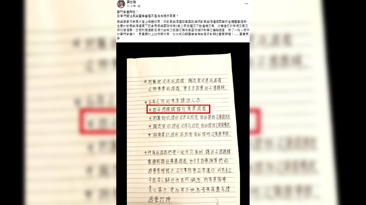 ↑圖說: 財經名嘴黃世聰認為可從長榮海運鉅額交易事件,進一步觀察我國公司大股東控制董事、獨董的現況案例。(圖片來源:黃世聰臉書)