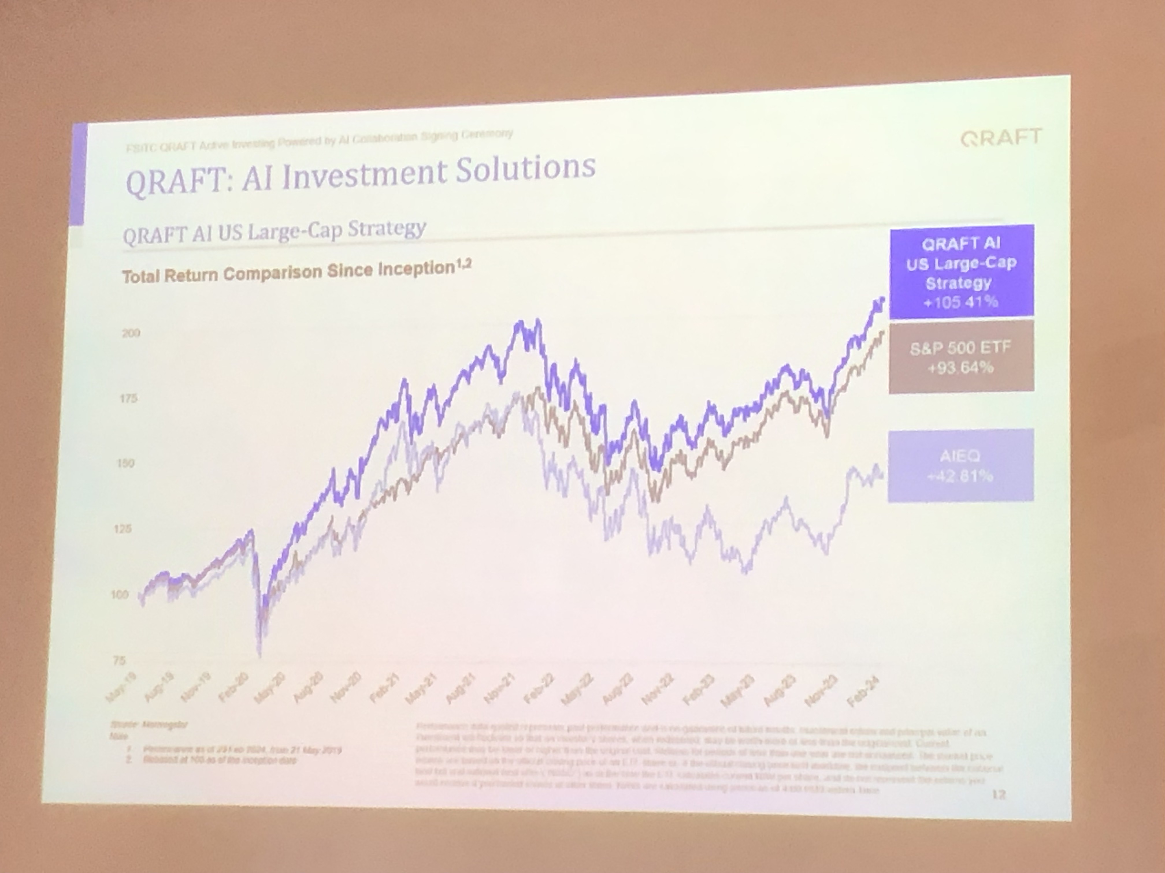 「ETF在台灣現在很紅,第一金投信穩穩地走,透過軟銀,介紹認識了QRAFT,這套Ai技術不是說要幫忙賺多少錢,但至少可以提供風險訊號,或許可以透過媒體,發布給投資人參考,韓國媒體也已經發布了有2年時間。」尤昭文說。