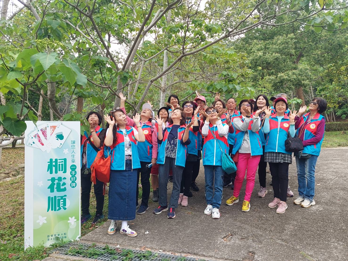 圖說:遊客於〈桐花順〉合影,盼沾沾好運氣。