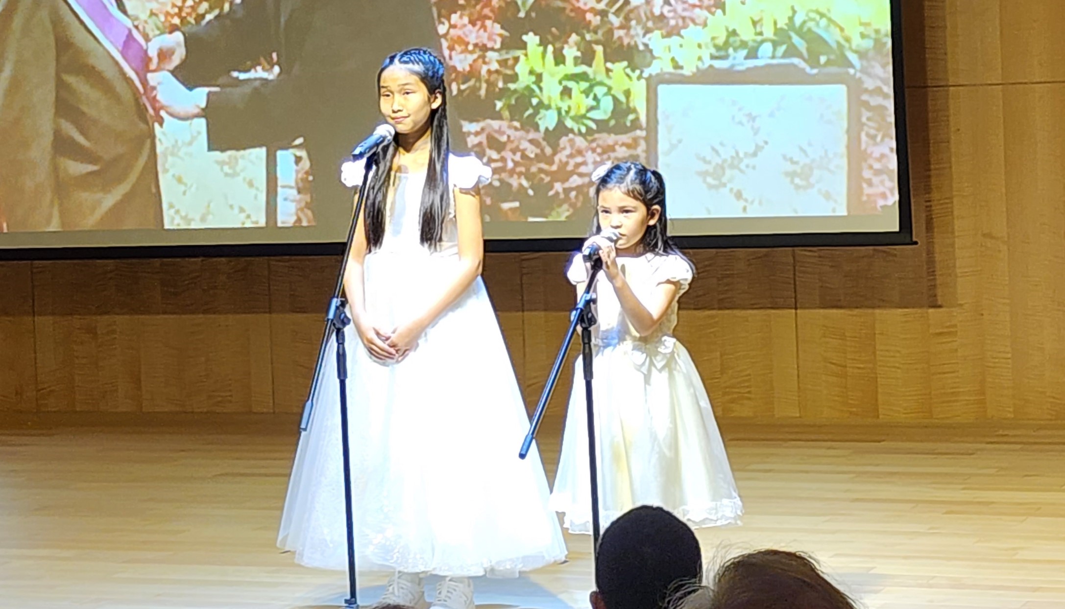 ↑圖說:蕭勤的孫女在捐贈儀式前演唱追思歌曲。(圖片來源:韓文明拍攝)