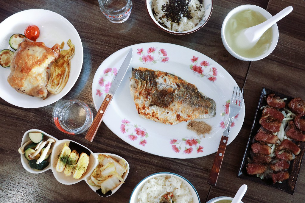 推開餐館的大門,直接面對的就是「好好吃飯」四個字,餐館裡保留了磨石子地板和古老浮雕花窗,坐在這裡瞬間回到七零年代,室內飯菜飄香,每一道菜都是記憶中媽媽的味道。沒有華麗的菜名,價格也很實惠,套餐除了包含主餐、配菜、湯品,還有飲品、水果、點心一應俱全,白飯、湯品還能免費續加。而主餐有一部分主力為魚類,例如大比目魚蒸樹子、香煎鱸魚等,配菜與例湯也每日不同,讓熟客們經常報到也吃不膩。